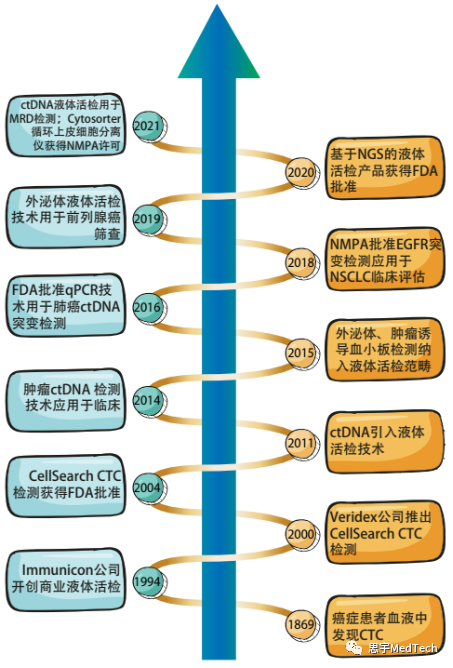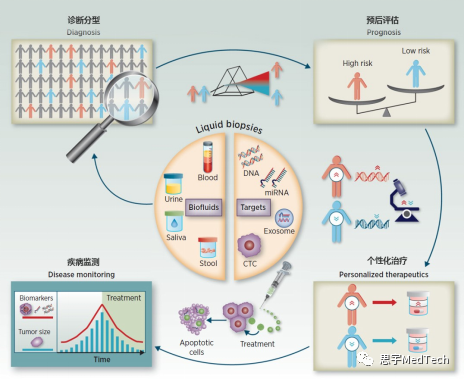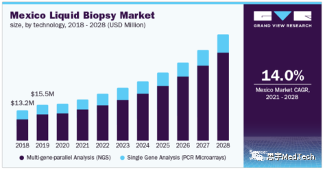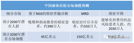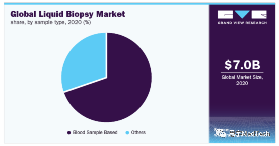 文章来源:思宇MedTech ;作者:白晓菲 近年来,随着医疗技术的发展和大众对身体健康的关注,肿瘤早筛早诊的观念和意识也在逐渐加强,期望做到早发现、早治疗,实现早康复的目标。与传统肿瘤筛查技术相比,液体活检是目前研究的热点,其在肿瘤的早期诊断、精准治疗、进展与转移、异质性与耐药性以及预后评估等领域发挥重要的协助作用,未来有望成为肿瘤精准诊断与治疗的突破口。 液体活检横空出世后,便被《麻省理工大学科技评论》评选为“2015年十大突破技术”,正在从研究走向临床和市场。因为其能够弥补肿瘤组织活检的诸多弊端,液体活检被视为引领肿瘤检测、诊断和动态监测的革命性技术,但如何将其转化为规范统一的临床工具,业内仍在努力进行尝试。 01 液体活检是一种新兴的非侵入性检测手段,是指提取人体中的非固体组织样本进行检测。肿瘤细胞在发生凋亡或转移等过程中会将与肿瘤相关的信息如DNA/RNA等小分子物质释放到体液系统中,通过检测这些标志性分子,可以发现肿瘤的早期发生/复发、辅助诊断分型及治疗方案调整等。 广义的液体活检包括对血液、尿液、唾液等所有体液以及粪便的收集和检测。主流液体活检技术主要使用循环肿瘤细胞(CTCs)或者非细胞DNA(cfDNA)进行检测。液体活检与传统组织检测相比有诸多优势,具有无创性、患者依从性好、可动态监测等优点,并克服了肿瘤的异质性。 (液体活检的临床应用) (来源:American Association for Cancer Research) 液体活检的检测对象主要为体液标本中的核酸、细胞和外囊泡。核酸指cfDNA/cfRNA(circulating free DNA/RNA,循环游离DNA/RNA,包括ctDNA/ctRNA);细胞指 CTCs(Circulating Tumor Cells,循环肿瘤细胞);外囊泡指含有小RNA、mRNA和DNA的细胞外微囊泡,包括外泌体(Exosomes)。 (液体活检的检测对象) 液体活检的前提是找到有“意义”的微量ctDNA(circulating tumor DNA)。实验室常用的ctDNA 检测技术包括扩增受阻突变体系(amplification refractory mutation system,ARMS)、二代测序(next-generation sequencing,NGS)、数字PCR(digital PCR,dPCR)和核酸质谱检测等。在实际样本中,ctDNA的含量仅占cfDNA的0.1%-5%,故要求检测技术有足够低的检出限和灵敏度,才能满足液体活检的检测需求。 用于液体活检的标本有多种,包括全血、血浆、胸/腹腔积液、尿液、脑脊液、唾液等。检测时,根据肿瘤的具体发生部位、转移情况的复杂性、不同体液标本的特征,应优先选择液体活检靶标容易检出部位的标本。血浆ctDNA 样本适用于检测多种来源的肿瘤,已在肺癌、乳腺癌、淋巴瘤等肿瘤的液体活检中有所应用。 体液中存在较强的背景干扰,加之液体活检的信息源极其微量,易在分析过程中出现偏差,因此液体活检对分析全过程的要求相对较高,尤其在标本预处理步骤需避免背景细胞或核酸对CTC和ctDNA的稀释作用,同时进一步防止对CTC 的破坏和对ctDNA的片段化及降解,导至最终假阴性结果。 (体液标本选择一般规律) (来源:《液体活检在临床肿瘤诊疗应用 和医学检验实践中的专家共识》) 02 03 2020年,全球液体活检市场规模为70.3亿美元,预计在预测期内将以13.5%的复合年增长率扩大。此外,由于癌症的发病率不断上升,加之对快速、微创诊断测试的需求增加,也进一步推动了市场的增长。 据美国癌症协会(American Cancer Society)统计,2021年约有23.5万人被诊断患有非小细胞肺癌,约有1/17的男性和1/15的女性在其一生中有患癌症的风险。因此,在目标人群中诊断和根除癌症的液体活检筛查需求越来越大。 (来源:Grand View Research) 在液体活检技术日趋成熟和癌症早筛测试逐渐进入市场的背景下,预计 。 (来源:灼识咨询) 截至2021年,全球有超过40家公司活跃在液体活检诊断和监测测试市场,液体活检市场预计未来5年的复合增长率为29.5%,到 2026年,该市场将超过30 亿美元(接近37亿美元)。 目前液体活检的一半收入来自美国,欧洲市场约占25%,亚太市场占12%。相较其他地区,北美拥有更加庞大的投资以及更多驻足本地进行开发测试的生物技术公司,同时还有各种组织协会,如美国临床肿瘤学会 (ASCO),推动了北美液体活检市场的发展。 (来源:Kalorama) 2020年,多基因并行分析(NGS)占据全球市场73%以上的收入份额,在预测期内将保持其主导地位。NGS技术可以检测可能导至肿瘤发生的各种突变,并检测治疗后可能由先前存在的克隆产生的耐药性机制。NGS技术的快速发展导至高精度测序的成本显著降低,此外,NGS相关企业推出的创新产品,也在一定程度上推动了液体活检市场的发展。例如,2021年2月,Twist Bioscience Corp推出了Twist NGS甲基化检测系统,用于液体活检癌症分析和表观遗传学研究。2021年4月,Biodesix宣布计划推出基于血液的52基因NGS检测,以改善其分子检测产品组合。 目前,液体活检生物标志物主要有ctDNA、CTC、外泌体检测三大类。在生物标志物类型层面,ctDNA在2020年全球液体活检市场中占主导地位,占据份额为36.68%。近年来,基于ctDNA的液体活检分析推动了癌症分子诊断和监测的应用,能够精准判断肿瘤进展、预后,辅助靶向治疗。另外,由于外泌体的发展势头良好,预计一直到2028年,外泌体检测市场将以较快的复合年增长率扩大。 在样本类型层面,2020年基于血液样本的液体活检市场占主导地位,占据份额超过69%。由于其具有非侵入性、无风险、可减少诊断所需成本和时间等优点,液体活检在癌症早筛领域