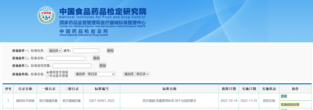 据标管中心网站消息,当前对标ISO 13485:2016的GB/T 42061-2022 医疗器械 质量管理体系 用于法规的要求即将于11月1日起实施: 详细信息 标准适用范围 本文件为需要证实自身有能力提供持续满足顾客要求和适用的法规要求的医疗器械和相关服务的组织规定了质量管理体系要求。这类组织能涉及医疗器械生命周期的一个或多个阶段,包括医疗器械的设计和开发、生产、贮存和流通、安装或服务,以及相关活动(例如技术支持)的设计和开发或提供。本文件也能用于向这类组织提供产品(包括与质量管理体系相关的服务)的供方或外部方。 ISO13485 科普 内容来源:国家认监委 什么是ISO13485标准? ISO13485标准是适用于医疗器械法规环境下的质量管理体系标准,其全称是《医疗器械 质量管理体系 用于法规的要求》。它采用了基于ISO9001标准中PDCA的相关理念,相较ISO9001标准适用于所有类型的组织,ISO13485更具有专业性,重点针对与医疗器械设计开发、生产、贮存和流通、安装、服务和最终停用及处置等相关行业的组织。目前组织可以依据ISO13485:2016版标准建立体系或者寻求认证。 ISO13485:2016标准重点内容 1、本标准以法规要求为主线,强化了企业满足法规要求的主体责任 2、本标准强调基于风险的方法管理过程,强化组织应将基于风险的方法应用于控制质量管理体系所需的适当过程 3、本标准重点强调与监管机构进行沟通和报告的要求 4、本标准在ISO9001的基础上,更加强调形成文件的要求和记录的要求 适用企业类型 ISO13485认证主要涉及的组织类型包括:医疗器械设计和制造商、医疗器械经营商、医疗器械服务提供方、医疗器械软硬件开发商以及医疗器械零部件/材料供应商。 ISO13485认证所适用的相关产品范围 ISO13485认证涉及的相关产品分为7个技术领域: 1、非有源医疗设备 2、有源(非植入)医疗器械 3、有源(植入)医疗器械 4、体外诊断医疗器械 5、对医疗器械的灭菌方法 6、包含/使用特定物质/技术的医疗器械 7、医疗器械有关服务 本月新规汇 截至发文时,本月共有以下这些医械新规发布: 1 可吸收骨内固定植入物注册审查指导原则 第一部分:合成高分子材料(征求意见稿) 2 《医疗器械临床试验质量技术规范》(征求意见稿)及编制说明 3 《体外诊断试剂临床试验质量技术规范》(征求意见稿)及编制说明 4 磁共振成像系统人工智能软件功能审评要点 5 纳米材料类医疗产品分类界定指导原则(征求意见稿)及编制说明 6 组织工程类医疗产品分类界定指导原则(征求意见稿)及编制说明 7 《关于进一步加强医疗器械产品分类界定有关工作的通知》(征求意见稿) 8 医疗器械网络销售质量管理规范(征求意见稿) 9 医疗器械唯一标识的形式和内容征求稿及编制说明 10 医疗器械唯一标识的包装实施和应用征求稿及编制说明 |