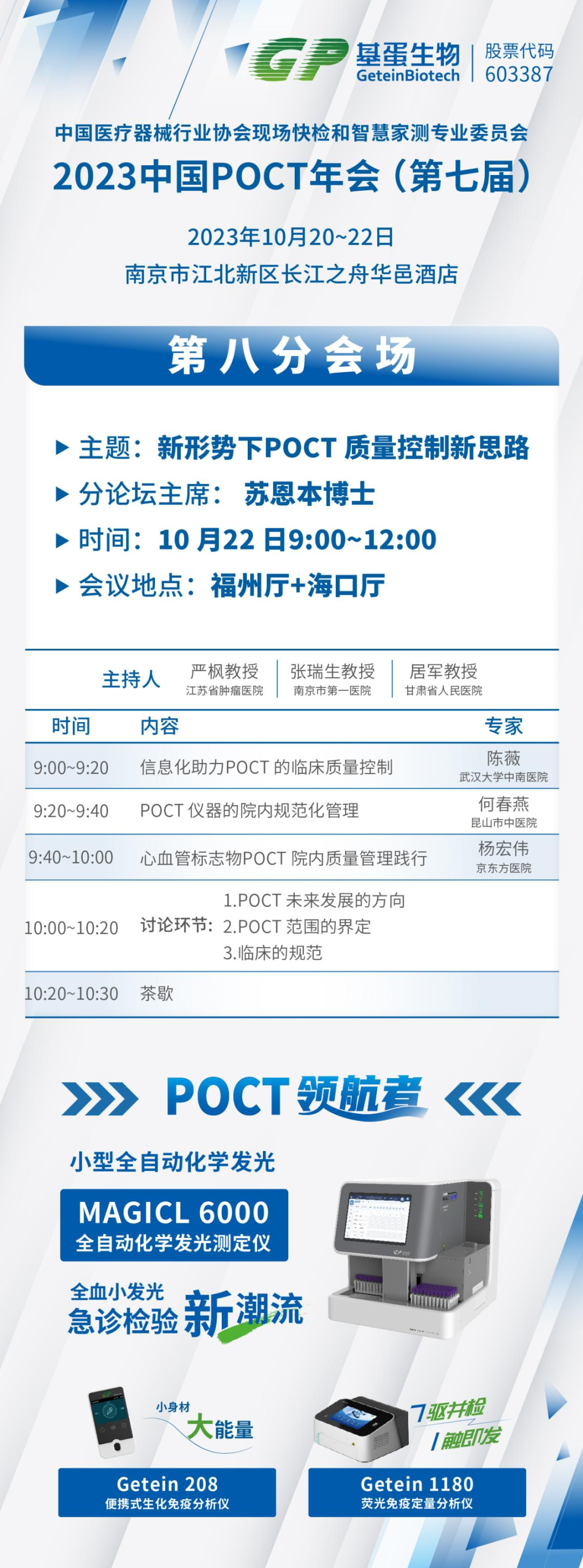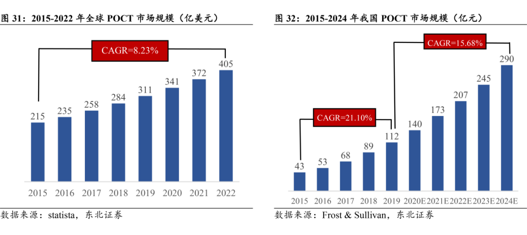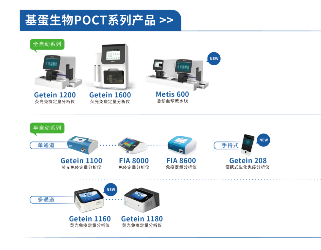 疫情期间新冠抗原的爆火,让行业重新认识了POCT,原来依靠快速、便捷,也可以赚大钱,刷新了很多IVD从业者的认知! POCT的英文缩写为(Point of care Testing),意为床旁检验或者即时检验,是指在采样现场即刻进行的快速诊断,省去了标本在实验室检验的复杂处理。WHO对POCT的定位为:经济、灵敏、特异、简便易用、快速、装置简单,这样的特点决定了其定位。 从应用领域看,POCT产品可应用于急诊检测、临床检验、慢病监测、传染病监测、检验检疫、食品安全、毒品检验等公共卫生领域。从应用场所看,POCT产品可出现在多种场合,包括大型医院的病房、门诊、急诊、检验科、手术室、监护室;基层医院、社区门诊和私人诊所、体检中心、卫生服务中心、疾病预防控制中心等。POCT应用突破空间限制,解决了传统的大型医疗器械的空间局限痛点,目前全球POCT应用场景主要以医院和诊所为主。 POCT检测覆盖疾病领域 国内POCT起步时间晚,处于快速发展阶段。POCT是体外诊断中增速最快的细分领域之一。2015年全球POCT市场规模为215亿美元,2022年增长至405亿美元,年均复合增长率为8.23%。中国POCT由于起步较晚,市场规模较小,终端渗透率较低,目前仍处于快速发展阶段。国内 POCT 市场规模从2015年的43亿元快速增长至2019 年的112亿元,CAGR(复合年增长率)高达21.10%,预计到2024年市场规模达到290亿元,2019-2024E年均复合增长率保持在15.68%,发展势头强劲。 市场仍然保持高速增长意味着竞争日趋激烈,什么样的产品真正符合终端对于POCT产品的需求呢?这个问题需要从多个维度的去衡量。 1.契合应用场景 POCT产品可应用于包括大型医院的病房、门诊、急诊、检验科、手术室、监护室;基层医院、社区门诊和私人诊所、体检中心、卫生服务中心、疾病预防控制中心等。 等级医院的检验科、急诊科、大型体检中心等场所的特点是:样本测试时间集中、标本量大、人力资源紧缺、需要快速获得检测结果等;对于POCT设备要求:测速快、自动化程度高、操作便捷,结果准确等。 部分临床科室、基层医院、社区卫生服务中心等场所场地紧凑、样本测试相对分散、更倾向于随到随测等,适用于仪器小巧便携、操作简单、出结果快、随时检测、试剂无浪费的高性价比POCT。 2.项目丰富程度 POCT产品应用范围广泛,在急诊检测、临床检验、慢病监测、传染病监测、基层体检等各方面均有广泛的应用。不同的应用终端所需的项目类型也不相同。理想的POCT产品检测项目种类丰富,可以在不同的应用场所,针对不同检测需求的客户,发挥快速检测出结果的价值。 3.操作便捷程度 POCT的定义就是在采样现场进行的、利用便携式分析仪器及配套试 剂快速得到检测结果的一种检测方式。实际应用时POCT的操作人员往往并非实验室专业技术人员。因此POCT检测设备必须具备操作简单、智能化、自动化程度高等特点,使操作老师更加省心,人机交互体验更佳。 根据基蛋生物近期披露的2023年半年度报告,POCT(剔除新冠)产品收入37709.21万元,同比增长28.27%,更是占到了半年度总营收的53.6%,在后疫情时代实现了主营产品的业务增长,是当之无愧的POCT行业领头人。 近年来,基蛋生物紧跟国家分级诊疗战略部署,为不同等级的医疗机构提供更合适、更精准、更智能、更全面的产品。基蛋生物POCT系列产品丰富,全自动POCT Getein 1600和Getein 1200荧光免疫定量分析仪: ➢ 1.仪器体积小、通量高、测速快、结果准确; ➢ 2.仪器适用的样本类型多样,检测项目丰富,包括心血管标志物、炎症标志物、肾脏类标志物、血糖、甲功、性激素、骨代谢、胃功能、肿瘤标志物等,满足不用使用客户的检测需求; ➢ 3.仪器自动化程度高,操作便捷简单,无需过多专业培训,使用体验感极佳; ➢ 4.市场装机量大,深受终端信赖,市场口碑好。 基蛋生物全自动POCT为等级医院检验科、急诊科和临床科室的最优选择。 除此之外,基蛋生物还有多款半自动POCT为基层心血管疾病筛查、慢病筛查和肿瘤初筛等提供最佳解决方案;手持式POCT:Getein 208便携式生化免疫分析仪将会成为基层医疗机构的得力助手,小巧便携、操作简单、项目种类丰富等特点的手持式POCT可深入基层,满足基础疾病的筛查与日常体检的需求。 基蛋生物2023年上半年研发投入1.38亿元,占营收比重高达19.56%。持续的创新投入,才能驱动高质量的突破和发展。根据相关数据,基蛋生物上半年POCT新取证项目多达八个,补充心肌、炎症系列拳头产品,布局各大细分领域,产品齐全,项目丰富!基蛋生物一直秉承创新驱动发展,产品决定未来的观念,致力于将POCT产品向检测项目更加丰富、结果更加精确、适用场景更加广阔的方向拓展。 目前,基蛋生物在POCT板块领先的同时,还在积极布局生化免疫、化学发光、血球、凝血、微生物检测、分子诊断、实验室自动化整体解决方案等板块。其小型自动化生化免疫流水线Metis 6000一经推出就火爆市场,受到了大量的关注和好评,根据目前的数据来看也是装机不断,在竞争如此激烈的生免流水线赛道占据了一席之地! 另外,基蛋生物将作为支持单位参与到10月20到22号在南京长江之舟华邑酒店举办的2023年POCT年会中去,届时基蛋生物将在18号展台为大家带来多款POCT星品,欢迎莅临展台沟通交流。 同时,基蛋生物也将在会议同期在第八分会场(福州厅+海口厅)举办分会场论坛,诚邀各位莅临参