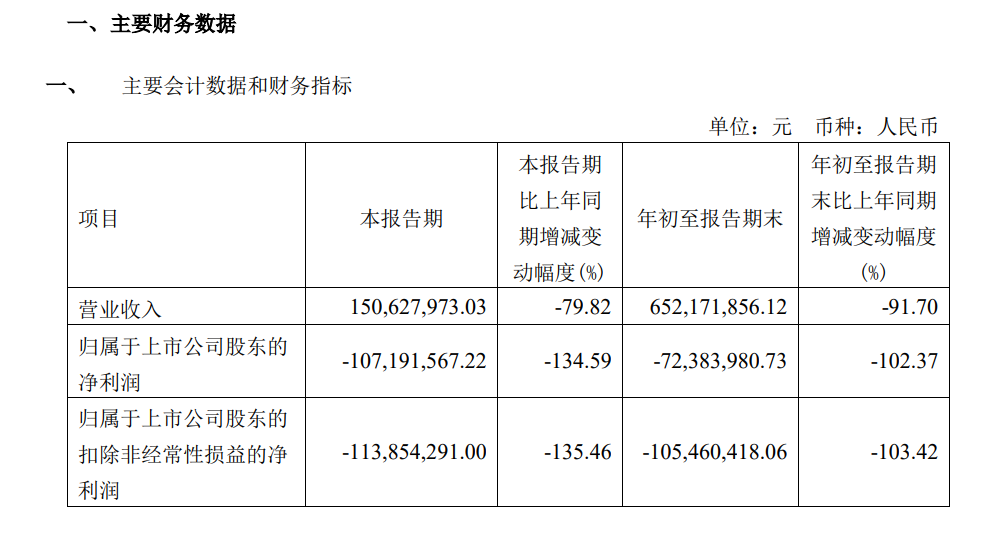 | 东方生物10月30日发布三季度业绩公告称,2023年前三季度营收约6.52亿元,同比减少91.7%;归属于上市公司股东的净利润亏损约7238万元,同比减少102.37%。