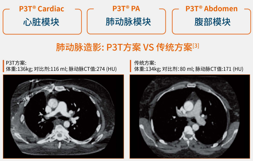 同一套参数无法满足所有病人,而复杂的参数调整严重依赖于技师经验。StellantFLEX搭载的P3T平台包含肺动脉、心脏、腹部等多样化模块,更专业更精准,以更少的对比剂用量实现更好的效果。此外,还可适配目前市场上几乎所有大放设备,使技术人员轻松实现个体化对比剂注射。不仅考虑患者的体重和扫描时间,P3T平台还首创结合心功能因素,可根据病人个体的心功能情况测出达峰时间,从而对注射方案进一步校正,确保成像时间的准确性。在“精准”方面:独创双流技术、Workstation 3.0平台。双流技术介导的三期相注射方案,允许StellantFLEX可同时按实际选择的比例注射对比剂和生理盐水混合液,进一步优化图像质量和提升组织对比度。目前三期相对比剂注射方案已得到国内外权威指南的一致推荐。其搭载的Certegra工作站赋能放射科信息化互联互通,比起目前手动记录和第三方软件记录更便捷准确。- 自动获取Modality Worklist,从中可直接选择患者进行注射;