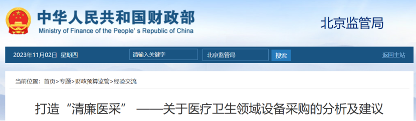 图| 拍信创意动辄数百甚至上千万元的医疗设备带来巨大市场和利润空间,同时也在招采环节滋生了暗箱操作的灰色地带。现如今,打掉设备采购违法违规利益链,回归清明的招采环境,越来越成为监管焦点。招采信息不透明、竞争不充分… 10月30日,财政部官网分享文章《打造“清廉医采” ——关于医疗卫生领域设备采购的分析及建议》。文章显示,在医疗器械采购过程中,部分医疗卫生单位存在实际采购价明显高于厂商出货价的问题,曾引起不少风波。对此,山东省烟台市财政局高度重视,专门成立调研小组,先后召集市卫健委、烟台毓璜顶医院、烟台山医院、烟台传染病医院、莱阳中心医院、烟台口腔医院等单位开展座谈并进行现场调研,还从侧面听取了部分供应商及医务人员的意见,提出相关解决措施。其中指出,由于医院纳入政府采购监管范围时间较短,仍有不少单位受传统观念的影响,没有按规定将应纳入政府采购程序的采购项目全面纳入政府采购监管,存在执行政策不严谨、操作程序不规范、信息披露不全面、市场竞争不公平的问题,甚至出现暗箱操作等违法违规情况。烟台市财政局经过调研了解到,医疗卫生领域政府采购出现上述问题,原因是多层次、多方面的,既有行业体制长期发展形成的传统规则,也有行业采购人员根深蒂固的思想因素,还有监管部门监督指导不到位的客观原因,具体表现为以下四点:一是采购人主体责任落实不到位。由于医院收费纳入财政预算管理较晚,纳入政府采购监管也相对较晚,部分医院政府采购内控制度尚未建立,导至采购流程不规范,存在立项、论证等环节形同虚设、采购需求编制不科学、评审过程流于形式、履约验收不严格等问题。二是政府采购流程执行不规范。部分区市医院的政府采购项目仍以自行组织招标形式代替规范性的政府采购程序,未严格按照政府采购法律法规要求将政府采购项目纳入进场交易范围。三是医疗设备招采信息不透明。一方面,招采信息公示缺乏或不全,制约市场公平竞争。例如,部分区市医院的政府采购项目未按照规定发布政府采购信息(如缺少采购需求);部分政府采购项目已公示的信息公告内容不完整、基本概况不详细,尤其存在设备核心参数、中标价格、中标供应商等关键信息公示不全的问题。另一方面,医院之间采购信息不对称。例如,市区县医院之间存在衔接不畅的情况,导至医疗部门之间沟通受阻,出现采购权限分散、执行政策不力、责任界定不清等问题。四是市场竞争不充分。虽然医疗卫生领域的供应商较多,但其服务质量参差不齐,设备来源渠道较为复杂。加上目前医疗设备采购信息不够透明,国外厂家尚存在一定的价格保护,这就导至医疗卫生领域政府采购普遍存在国外设备价格高于国内同类产品的情况,甚至导至部分国外厂商凭借其自身行业垄断地位随意增加附加服务费的问题。加强采购监管力度,信息公开、共享