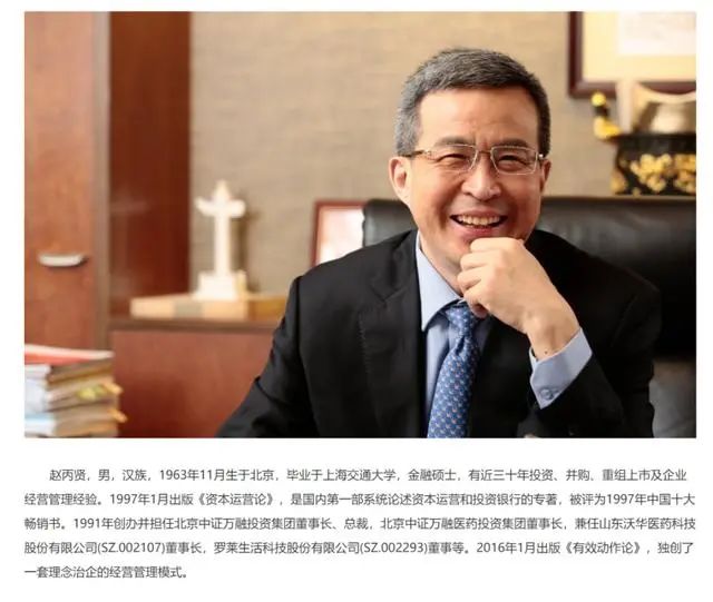 又一知名医企董事长被采取留置措施,配合调查,原因尚未公布。 11月6日,沃华医药于深交所发布《关于公司实际控制人被留置的公告》,公告显示,沃华医药近期获悉,公司董事长、实际控制人赵丙贤被采取留置措施,配合监委机关协助调查。但所涉事项与公司无关,截至本公告出具日,公司未收到相关机关的通知,也未接受过任何协助调查。 沃华医药表示,截至本公告披露日,公司尚未知悉留置调查的进展及结论,同时会密切关注上述事项的最新进展情况,并依法披露。 公开资料显示,赵丙贤生于1963年11月,毕业于上海交通大学,硕士学位。除拥有沃华医药控制权外,赵丙贤在资本市场长袖善舞,拥有超三十年投资,并购,重组上市及企业经营管理经验,因曾助力多家公司成功上市,其被华尔街日报记者称为“中国的巴菲特”。赵丙贤还曾撰写《资本运营论》、《有效动作论》,分别于1997年、2006年出版,前者为国内第一部系统论述资本运营和投资银行的专著,后者则独创了一套理念治企的经营管理模式。 图源:沃华医药官网 |