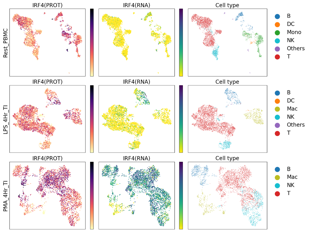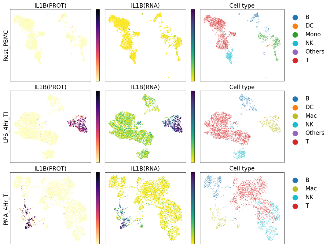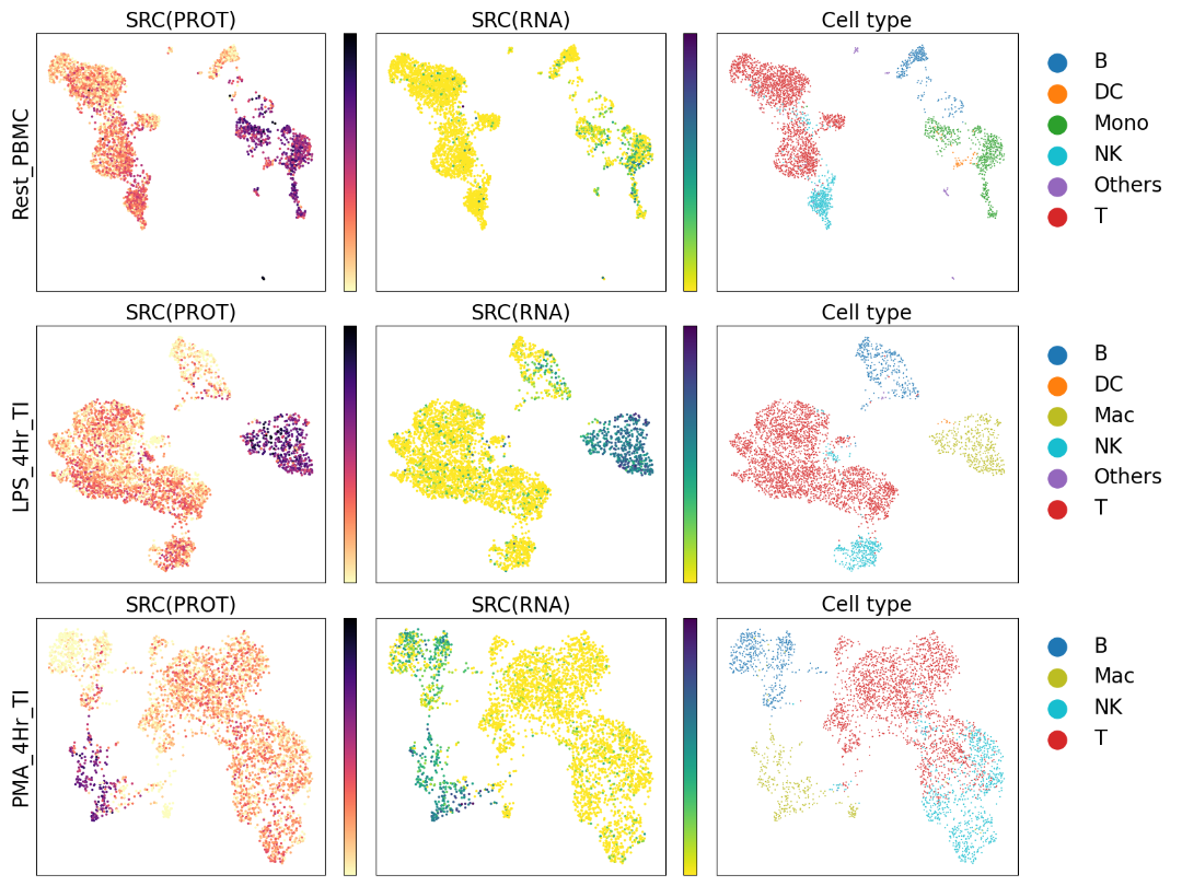 “借助CITE-seq(Cellular Indexing of Transcriptomes and Epitopes by sequencing)等技术,研究人员可以在单细胞基因表达谱的基础上叠加高度多重化的细胞表面蛋白数据,但他们无法获得细胞内蛋白的信息。Proteintech Genomics一直致力为研究人员提供更深入地超越细胞表面的探索能力,希望不局限于细胞表面蛋白,还能够提供高分辨率的细胞内蛋白质视图。我们的MultiPro™抗体将帮助研究人员突破单细胞研究的界限。” 10x Genomics生物学副总裁 Peter Smibert说: "在加入10x Genomics之前,我的实验室开发了CITE-seq技术来测量单细胞转录组中的表面蛋白。虽然随后有几个团队成功地将细胞内蛋白与单细胞基因表达耦合,并得到可信信号,但所得数据并不理想。Proteintech Genomics的MultiPro™ Immune Profiling Cocktail与10x Genomics® Chromium® Single Cell Gene Expression Flex测序技术相结合,是一项具有革命性意义的突破,不仅可以在整个细胞层面(包括表面、细胞质和细胞核)实现蛋白质的检测分析,还能提供高质量的单细胞基因表达数据。 Cytosolic–Example data=SRC Nuclear–Example data=IRF4 Secreted–Example data=IL1B MultiPro™ Human Fixed Cell Immune Profiling Antibody Cocktail是专为与10x Genomics产品配套使用而开发的,该产品已于2023 年11月6日上线Proteintech英文官网并开始发货。欲了解更多详情信息,请访问Proteintech英文官网www.ptglab.com。咨询订购请联系:genomics.inquiries@ptglab.com。