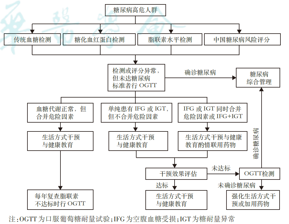 糖尿病高危人群筛查及管理流程图