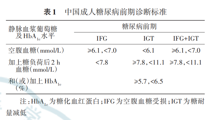 2型糖尿病由糖尿病前期发展而来,有效干预糖尿病前期可明显减少其转化为糖尿病的可能性。糖尿病前期个体每年约有 5%~10%进展为糖尿病。“糖尿病前期”人群作为糖尿病的“后备军”,是糖尿病预防的重点对象。美国糖尿病协会(ADA)于2010年首次将糖化血红蛋白(HbA1c)5.7%~6.4% 作为糖尿病前期的诊断标准,我国《中国成人糖尿病前期干预的专家共识(2023版)》推荐,在采用标准化检测方法且有严格质量控制(美国国家糖化血红蛋白标准化计划、中国糖化血红蛋白一致性研究计划)的医疗机构,可以将5.7%≤HbA1c<6.5%作为糖尿病前期诊断标准。