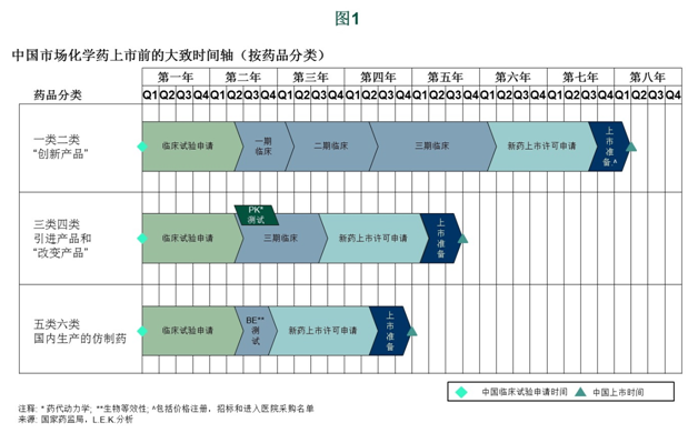 随着中国经济的发展和市场的日趋成熟,外资企业对中国本土企业的并购活动在各行各业正方兴未艾。但是在医药行业,现今中国市场最为炙手可热的行业之一,外企对本土企业的并购活跃程度却要略逊一筹。这其中的原因是什么呢?外资企业为了在中国市场获取成功,收购中国本土企业有哪些好处?合适的时机又是什么呢? 收购中国企业的动机 中国拥有世界上最激动人心的医药市场——这个市场不仅规模巨大,而且正以每年两位数的速度高速增长。世界上的主要市场中,没有一个其他的市场能够两者兼而有之。从医药行业的规模来看,中国已经和日本不相上下,仅次于美国。而从增长上来看,我们甚至可以说全球医药行业的增长很大程度上依赖于中国市场的贡献。 对跨国医药企业而言,谁都不能对中国市场掉以轻心。在做好现有业务的同时,如何利用兼并和收购国内企业来推动业务增长更上一个台阶,早已成为众多跨国药企老总们思考的战略重点之一。那么,使得决策者们下定决心实施这一战略的关键原因有哪些呢? 首先,从外部政策环境来看,中国政府是非常支持和鼓励行业整合的。中国市场目前有超过5000家药品生产企业,这其中的大多数企业规模都很有限。而且,药品安全又是政府工作的重中之重,政府对制药企业的生产标准和产品质量的提升的愿望也十分强烈。因此,代表国际领先水平的跨国药企并购和整合国内同行,符合国家对医药产业的优化重组和升级的政策方向,应该会得到政府的支持。 其次,对跨国药企而言,并购中国企业能迅速扩大自身规模。虽然这听起来有些简单,但是企业的规模,及其所能代表的“实力”和“品牌影响力”等,会给医药企业在中国市场上带来实实在在的优势。在中国现行的药品集中采购招标过程中,大多数省份的招标评分条件都是“质量”和“价格”并举。暂且不论“质量”评分能占据多少百分比,但在很多情况下,不论是销售收入,还是生产能力,甚至是无形的“知名度”,都能为投标企业在“质量”这一条上获得加分,从而在激烈的竞标过程中占得先机。 还有,众所周知中国药品上市注册时间非常漫长。“一类”或“二类”新药的艰难历程就不用说了,即使是从国外引进一个“三类”或者“四类”的新药,甚至是注册一个国内生产的仿制药,整个过程没有三到五年拿不下来(见图一)。对于那些亟待通过产品线扩张来实现中国销售增长的企业来说,收购一家拥有丰富产品线的国内企业无疑是一条捷径。