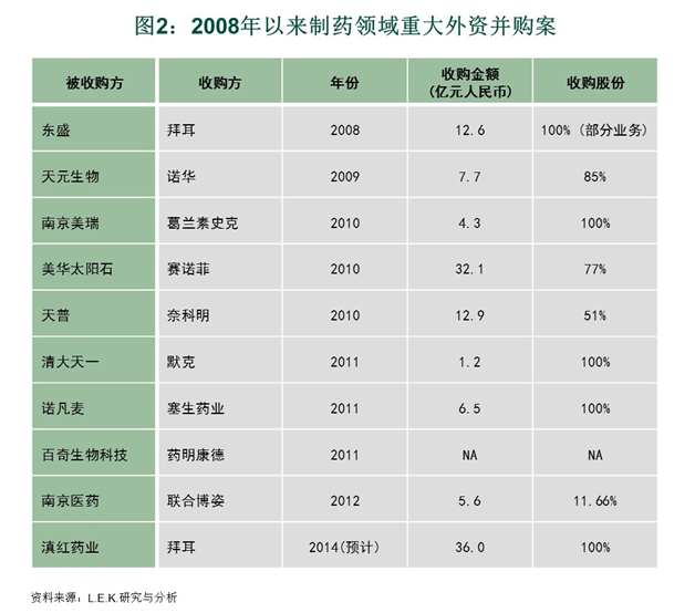 勇于“吃螃蟹”的先锋 根据投资中国(ChinaVenture)对公开信息的统计,中国医疗相关行业中,本土企业之间的并购交易非常活跃,仅2013年就有超过200例,在2006年至2013年的8年中总交易金额超过了220亿美元(不包括私募股权或者创投基金的投资,下同)。同时,中国本土企业海外并购交易金额在这8年中达到了17亿美元,并且呈逐年递增的态势。而在同一个时间段内,外资企业收购中国企业的交易金额累计超过30亿美元。自从中国医改启动以来,制药领域的重大外资并购案,并不算太多。
