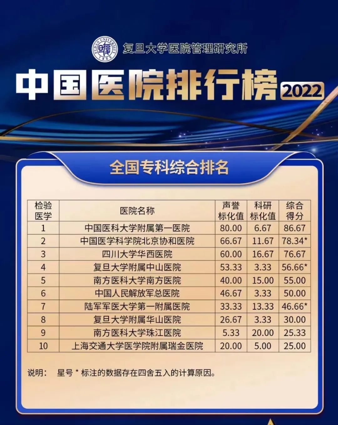 2022年度 检验医学专科声誉排行榜