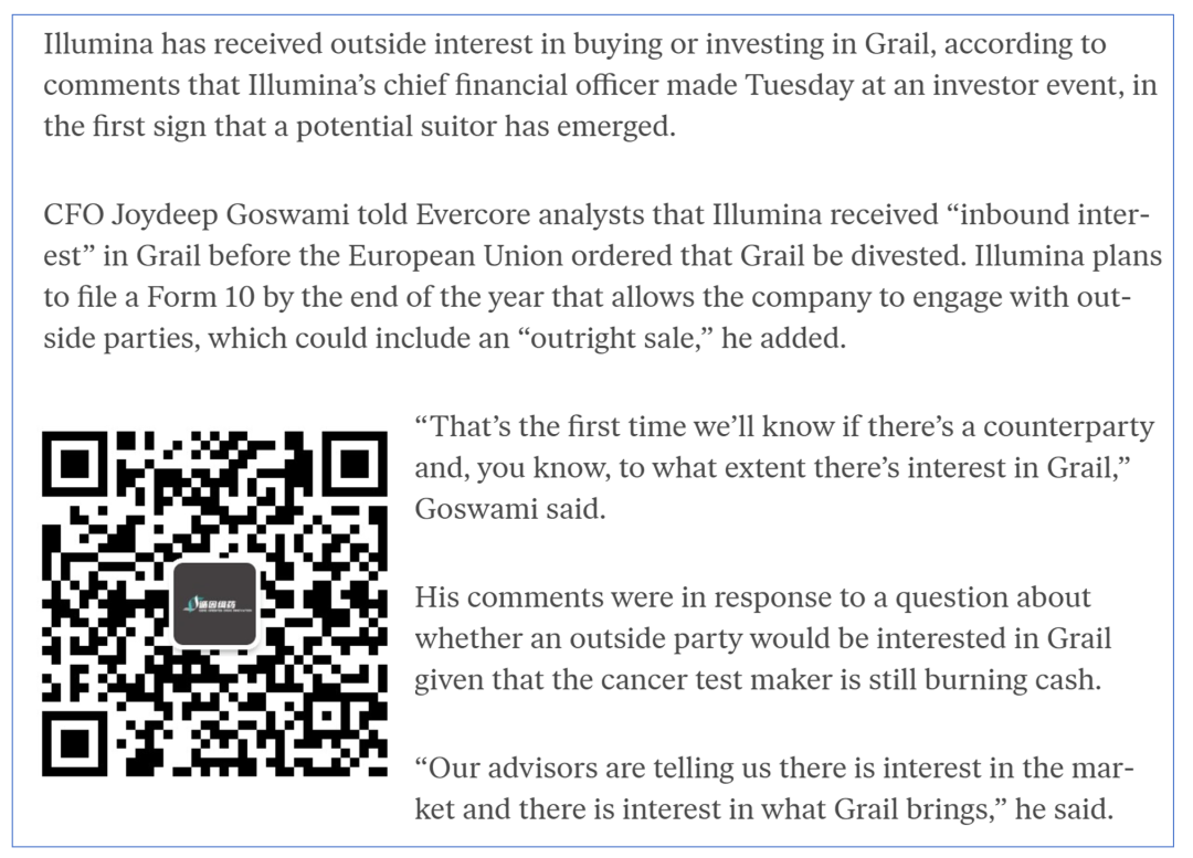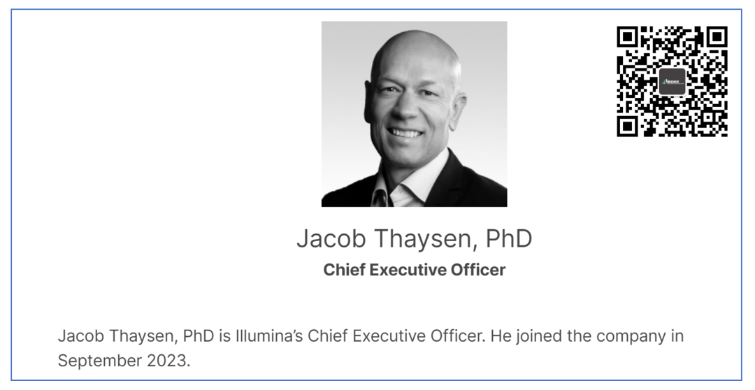 距离Illumina新CEO Jacob Thaysen博士正式入职已经接近3个月。 按理说,一个季度的时间足以让其对整个测序仪帝国有了清晰的认识。 也正是其发布对外策略的第一个窗口期。 2023年11月29日,Jacob参加了Piper Sandler 35th Annual Healthcare Conference,会上Jacob初步阐述了接下来Illumina的一些策略。 这也是我们第一次通过对其谈话进行解读进而分析Ilumina接下来可能的一些策略。 以下内容为其讲话内容的部分提炼,建议通过参考链接阅读全文,如果出现误读欢迎指出。 关于SBS Jacob认为XLEAP是对SBS(边合成边测序)的重新发明,是迄今为止最好的SBS技术。 XLEAP目前推动测序质量推升到Q40≥80%,NovaSeq X的客户非常满意,并且愿意使用他们熟悉的技术。 评:接下来,除了通量的竞争,NGS可能会迎来准确性的竞争。 关于成本与竞争 Illumina是单G成本的发明者,但是,Jacob认为单G成本不仅仅要考虑测序成本,还要考虑建库和生物信息学的开销。 Illumina能够在24小时内响应客户,目前是唯一一家。 评:Illumina可能不再卷单纯的测序价格,而是推动客户采用其综合解决方案,比如试剂+Dragen平台来吸引客户。 另外,其他各家要加强技术支持了。 关于需求 单细胞、空间生物学、蛋白组学等多组学研究对测序有着广泛的需求。 评:由于Illumina并没有单细胞、空间生物学平台或者技术,因此很可能对这两个方向或者说其他可能用NGS技术的平台进行扶持。 另外,SomaLogic的NGS版到底出不出? 关于并购 Jacob表示目前Illumina有可持续的研发能力使其保持领先,在测序领域基本上具备所需要的一切。 但是,对信息学领域的机会感兴趣但是并不会有大的并购。 评:纳米孔测序真的不考虑下? 关于中国 中国营收只占Illumina营收的10%,仍然看好中国发展前景。 中国区比较特殊,需要弄清楚如何运营。 临床领域的客户非常喜欢Illumina,中国客户比世界上其他地区的客户都喜欢继续和Illumina合作。 因为中国客户知道,Illumina就是代表着最高质量。 评:不要误判形势。 有一个细节,不知道大家发现了没有? 以上的内容并没有包含关于GRAIL。 不要紧,CFO Joydeep Goswami最近跟Evercore的分析师的谈话可能有一些线索。 首先,GRAIL不是没人要的“辣鸡”。 Joydeep表示早在GRAIL被勒令从Illumina剥离之前,就已经有机构对Illumina表示有意收购。 其次,GRAIL可能将被直接出售。 年底前Illumina将向SEC递交文件,与外部客户接触,或将包含直接出售GRAIL的选项。 第三,Illumina未予置评。 这代表,以上的讲话可能是对市场态度的一种试探。 还有,没有CEO点头,CFO敢这么说? END |