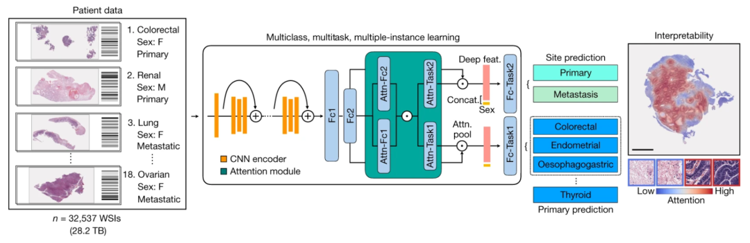 文章内容整理自中南大学生物医学工程系 喻罡 教授的专题讲座 病理诊断指通过手术切除、内镜活检、细针穿刺等方式获取人体组织或细胞,借助显微镜等工具对样本进行一系列处理和观察,研究疾病病因、发病机制、形态结构、功能和代谢等方面的改变,揭示疾病的发生发展规律,从而阐明疾病本质的医学科学,病理诊断是绝大部分疾病,尤其是肿瘤疾病的诊断“金标准”,因此病理诊断水平很大程度上决定了一个医疗机构的医疗质量水平。 近年来,随着人工智能的高速发展,其在病理诊断上的研发和应用日益广泛。但时至今日人工智能在诊断病理学上的应用尚属研发的早期和探索阶段,目前已有一些科研成果,但是多数没有得到大面积推广和利用,缺乏在应用中不断优化和完善的良性循环。 病理人工智能的主要研究进展 当前的病理人工智能主要基于有监督学习,然而有监督学习依赖于海量的标注数据,这严重制约了人工智能系统的开发和落地。针对当前病理人工智能遇到的瓶颈问题,中南大学基础医学院和湘雅医院合作的科研团队首次应用半监督学习方法建立了专家级的肠癌识别模型,对来自13个独立医学中心的8803个病人的13111张肠道组织样本的病理全片图像,进行了广泛的评估和测试。 技术路线图 实验证明,当少量标注图像时,半监督学习的肠癌模型明显优于相同标注数量的有监督学习模型。采用10%标注数据训练的半监督模型,与海量数据训练的有监督模型无显著性差异。在15,000肺癌和294,912淋巴瘤的扩展实验中,进一步证实半监督模型能够取得和海量标注数据训练的有监督模型的相似性能。通过多中心研究,证实半监督学习可以实现专家级的病理人工智能系统。由于半监督学习降低了对标注数据的依赖,因此在高效构建病理人工智能系统的实践中,具有极大的潜力和应用前景。 第二个新进展是解决不明癌症原发灶的问题。来自哈佛大学的研究人员通过训练一个卷积神经网络(CNN)模型,研究者仅依靠读取患者的病理切片,便能实现对原发灶不明癌症的溯源。 通过学习大量患者的苏木精伊红染色(H&E)病理切片,以弱监督的方式训练出一个CNN模型(命名为TOAD)。在读取一张病理切片后,TOAD能够对人体的18种组织进行预测打分,通过对预测分数进行排序,以找到癌症最可能的组织来源。 病理切片及CNN网络模型示意图 从公共数据库和百翰妇女医院中收集了来自29107名患者的32537张H&E染色切片,分别标记为18种原发癌源。按照70%,10%,20%的比例划分为训练,验证和测试数据。 通过反复的训练和优化模型,TOAD在测试数据中的Top-1准确率为83.4%,Top-3准确率为95.5%,而Top-5准确率已经能够达到98.1%。 此外,英国利兹大学圣詹姆斯医学研究所、德国国家肿瘤疾病中心的住院医师团队发表在Nature Medicine的研究成果表明,使用群体学习(SL)训练的人工智能(AI)模型可以直接从结直肠癌H&E染色的病理切片上预测BRAF突变状态和微卫星不稳定性。 深度学习和SL工作流程示意图 研究者开发了一种具有SL能力的AI pipeline,用于基于组织病理学图像对实体瘤进行分子分类。研究人员收集了三个用于训练的大型数据集:Epi700(661名来自北爱尔兰的患者)、DACHS(2448名来自德国西南部的患者)和TCGA(632名患者)。每个数据集都存储在物理上独立的计算服务器中。然后,分析流程直接从CRC组织病理学整张幻灯片图像(WSI)上预测遗传改变,在外部数据中测试所有模型。 该方法可以应用于计算病理学中的其他图像分类任务。SL使研究人员能够使用小型数据集来训练AI模型;在许多小数据集上共同训练模型相当于在单个大数据集上训练模型。这也降低了硬件要求,有可能使SL成为低收入和中等收入国家研究人员的选择。 病理人工智能的发展瓶颈 尽管人工智能在病理学中取得优异成果,但在深度机器学习临床运用之前,以下问题仍需解决。 标准化和规范化 数字病理中全片图像的成功适配,很大程度上取决于准备高质量病理切片的每一步,包括包埋、切割、染色、扫描。切割时组织切片的折叠,覆盖切片时染色变化和气泡的存在,扫描时亮度、强度的差异,平均颜色和边界强度的不同设置都可能导至原始数据不可靠,而产生不准确的结果。 在计算病理学中的作用 计算病理学不仅在医学研究中很重要,而且在临床实践中也不可或缺。为了实现这一目标,需要不同领域的专家参与到计算病理项目中去,包括数据科学家,如用于算法设计和架构的统计学家和生物信息学家,物理环境建设和硬件维护的工程师。其中,病理学家在向开发团队介绍医学问题和临床应用以及在下游行业发展方面发挥着关键作用。 在计算病理学中,病理学家不仅需要扎实的临床知识和经验,还需要统计分析和数据挖掘的能力,以弥合临床医学和人工智能之间的鸿沟,以便突然发生疾病或发现新的生物标志物时,病理学家可以快速反应,亦或是创建一个新的算法或优化现有的算法,以协助临床医生。此外,有着计算思维的病理学家能够了解数据分析过程中的潜在问题,因而可以清楚地解决临床问题。 硬件局限 计算病理学应用的准确性在很大程度上依赖于大量的数据、可靠的硬件软件以及网络环境的支持。大的图像文件(每次扫描大约3 GB)需要大量的存储空间,并具备本地和云备份能力。此外,机器深度学习解决方案,特别是应用于病理图像分析时,严