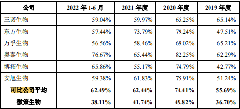 报告期内,毛利率低于行业上市公司,即使有高毛利率的新冠检测产品加持,也未改变这个水平位列。