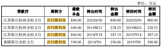 而在财务内控方面,也有周折复杂的历史,微策生物的控股股东杭州微著控制公司的股份比例为31.33%,低于三分之一的临界点,这是其频繁的吸引投资计划导至。从2019到2020年微策生物曾前后四次将取得的贷款支付给关联方百尺楼科技,再由百尺楼科技将款项转回给公司,相关金额总计为2005.74 万元。