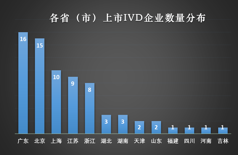 接着来看区域分布,广东和北京以绝对优势占据第一梯队的位置,紧随其后的是江浙沪包邮圈,上述五个地区IVD相关上市公司数量已经占据全国上市公司总量的80%以上。区域优势主要体现在高效的供应链、完整的上下游产业链和丰富的专业人才方面,这种区域局势很难在短时间内发生扭转,所以从地利的角度,IVD优势企业还是建议优选广东、北京和江浙沪这几个地方。