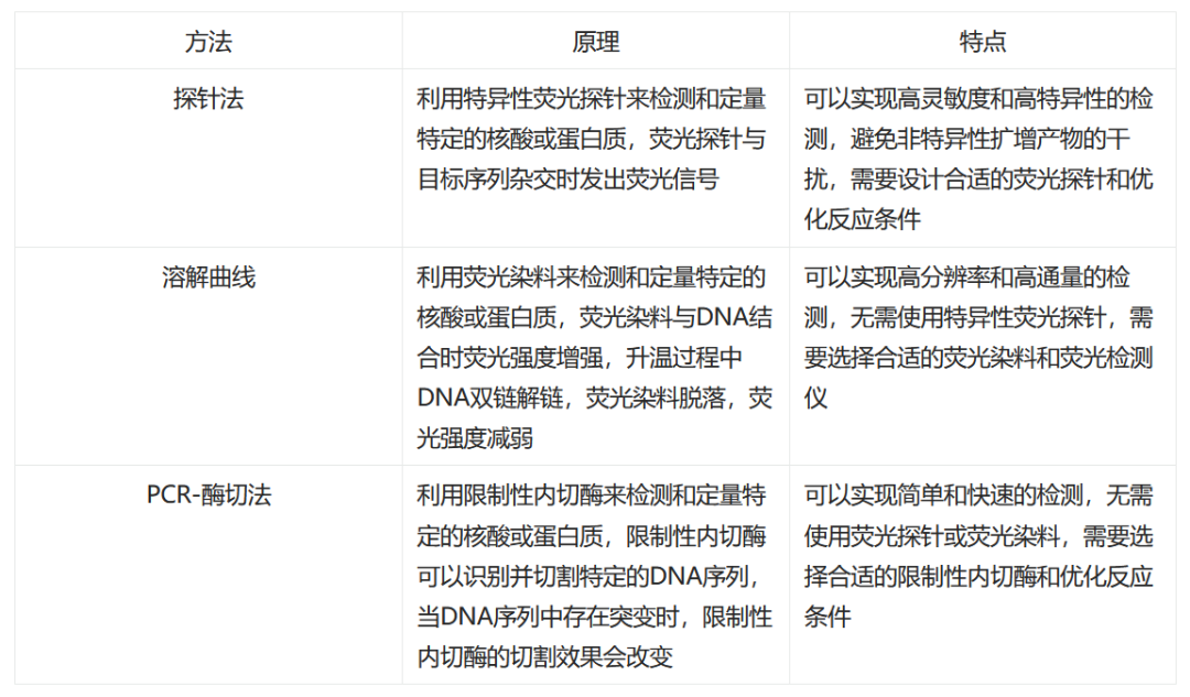 荧光定量PCR技术是一种利用荧光探针或荧光染料来检测和定量特定的核酸或蛋白质的分子生物学技术,因为新冠大流行使其仪器在诸多乡镇医院都有使用,本文在此讨论基于这个操作简单且检验系统成熟的系统下产品的深度开发案列及可探索的方向。荧光定量PCR (qPCR) 作为一种高灵敏度、高特异性、快速、准确的核酸检测方法,但通量有限,多重检测技术一直是近年来的探索。 本文将对比分析以下几种已经产业化的一管多重检测技术: 荧光定量PCR技术能做多少重取决于以下两个个因素: