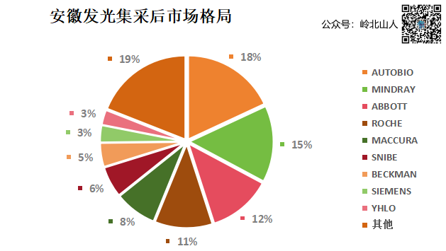 对于安徽牵头的发光和分子集采而言,化学发光部分的体量相对较大,根据分组规则,A组9个厂家占据81%的市场份额。