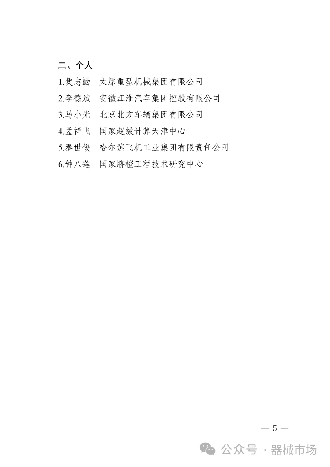 第五届中国质量奖和中国质量奖提名奖建议名单公示