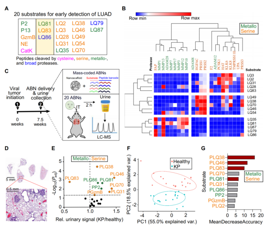 肺癌是一种恶性肿瘤,主要类型包括非小细胞肺癌和小细胞肺癌。根据世界卫生组织(WHO)的数据,肺癌是全球第二常见的癌症,且是癌症死亡的首要原因。每年约有220万新发病例和180万相关死亡。在发达国家,由于早期诊断率高、治疗方案佳,因此肺癌死亡人数持续下降。无论国内外,数家企业正在或者已经将成熟的肺癌早筛试剂盒投入市场。 知名多组学癌症早筛公司Freenome于十二月初宣布启动一项名为PROACT LUNG的新研究,来验证其肺癌癌症筛查血液测试的临床效果,若成功则将申请FDA验证。 中低收入国家的肺癌死亡率一直居高不下,这可归因于在资源贫乏的环境中早期诊断机会的不平等。基于此背景,更加简便且灵敏的肺癌早筛技术始终是行业研究热点。近日,麻省理工大学团队开发了一种用于早期肺癌诊断的新型液体活检技术,可以通过检测尿液中与肺癌相关的蛋白质来判断患者是否罹患肺癌。其核心是合成了一种可吸入的纳米颗粒传感器,受试者首先吸入这些纳米传感器,如果传感器在肺部遇到与癌症相关的蛋白质,它们就会产生信号,并在尿液中积累,可以用简单的纸质测试条检测到,20分钟内即可出具结果。本项研究主要的工具为一特制传感器。该传感器由涂有报告基因(例如DNA条形码)的聚合物纳米颗粒组成,当传感器遇到蛋白酶时,报告基因就会从颗粒上裂解下来,而蛋白酶在肿瘤中通常过于活跃。这些掉落的结合物最终会积聚在尿液中并排出体外。 为了让纳米颗粒进入肺部,研究人员创建了两种颗粒配方:一种可以雾化并用喷雾器输送的溶液,以及一种可以使用吸入器输送的干粉。一旦颗粒到达肺部,它们就会被吸收到组织中,并在那里遇到可能存在的任何蛋白酶。人类细胞可以表达数百种不同的蛋白酶,其中一些在肿瘤中过度活跃,它们通过切割细胞外基质的蛋白质帮助癌细胞逃离其原始位置。这些癌性蛋白酶从传感器上切割DNA条形码,使条形码在血液中循环,直到通过尿液排出体外。研究人员在小鼠身上测试了他们的诊断系统,这些小鼠经过基因工程改造,可以产生与人类相似的肺部肿瘤。这些传感器是在肿瘤开始形成7.5周后施用的,这个时间点可能与人类I期或II期癌症相关。在首轮小鼠实验中,研究人员对20种不同类型的传感器敏感水平进行了研究,这些传感器旨在检测不同的蛋白酶。研究人员使用机器学习算法分析这些结果,确定了仅四个传感器的组合(PLQ38-DNA1、PLQ46-DNA2、PLQ81-DNA3和PLQ83-DNA4),预计可以提供准确的诊断结果。然后他们在小鼠模型中测试了这种组合,发现它可以准确地检测早期肺部肿瘤。虽然在动物实验中效果限制,但是研究人员仍然表示,对于人类来说,可能需要更多的传感器来做出准确的诊断。目前正在计划分析人体活检样本,看看他们使用的传感器面板是否也能检测人类癌症。同时,Sunbird Bio公司已经对Bhatia实验室开发的类似传感器进行了第一阶段试验,用于诊断肝癌和一种称为非酒精性脂肪性肝炎 (NASH) 的肝炎,相信该技术在人类疾病的应用上即将迈上商业化道路。纵观各大癌症早筛公司使用的技术,目前主流的早筛手段都是利用血检这一模式,这强烈依赖于医护采样,患者无法自行操作。并且即使在及其快速周转检测的条件下依旧需要近20小时才能获得结果。而本篇文章中所提到的基于纳米颗粒传感器的尿检新技术,则可以在20分钟内就获得最终诊断结果。尿检的另一优势,还在于样本易获得性与稳定性,患者可以自主完成检验,并且尿液相比于血液更易采集、保存于运输。目前,在癌症早筛领域中,仅膀胱癌这一疾病多采用尿检样本作为检验材料,其他癌种进行早筛时使用的体液大多为血液。在本篇文章中所介绍的研究中,独创性地提出尿检也可应用于肺癌早期诊断,提示了纳米颗粒技术结合尿检技术在不同癌症早筛中的巨大潜能。目前,已有如诺辉健康的宫证清尿液HPV检测试剂盒等大企业已经在采用尿检的方式进行疾病筛查与早诊。相信随着尿检在肺癌以及其他癌症早筛技术中的发展,全球范围内癌症早筛的技术选择也将越来越多,更多的产品也将迎来上市,为患者带来福音。