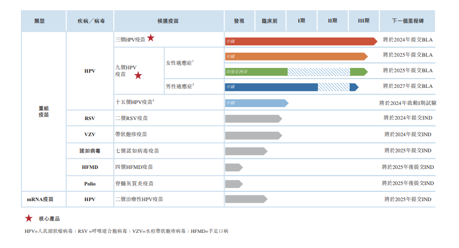 图片来源:港交所官网 招股书显示,康乐卫士是一家中国临床阶段的疫苗开发商,拥有全球最丰富的HPV疫苗产品组合,正在从生物技术研发向商业化转型。我们的三款HPV疫苗组合具有很高的商业知名度,引领业界满足不同人群对不同服务的需求。 康乐卫士接近商业化的三价HPV候选疫苗为核心产品,专为保护东亚女性而设计,预计将于2024年年底前在中国提交BLA。康乐卫士的III期九价HPV候选疫苗是另一项核心产品,预计将成为首批获准用于女性的国产九价HPV候选疫苗之一,计划于2025年在中国提交BLA,亦是中国首个开始对男性进行关键效力试验的国产九价HPV候选疫苗。康乐卫士亦正在海外积极开发我们的九价HPV候选疫苗,并在印度尼西亚就女性进行III期临床试验,预计将于2025年向印度尼西亚BPOM提交BLA。康乐卫士的准I期十五价HPV候选疫苗,在全球所有可商业化或已取得IND批准的HPV疫苗中,其价次最高。 康乐卫士的研发管线 图片来源:招股书 康乐卫士还有六种开发中、针对有医疗需求缺口或迫切需要疫苗升级的疾病领域的临床前候选疫苗。 2023年3月1日,康乐卫士已经在北交所IPO上市,发行价为42元/股,募集资金净额为2.67亿元。 图片来源:招股书 财务方面,2022年及2023年前9个月,康乐卫士收入为190.1万元及160.1万元,年内/期内亏损及全面亏损总额为2.93亿元及2.25亿元。 康乐卫士的股权结构 图片来源:招股书 招股书显示,刘永江先生,62岁,于2008年4月加入康乐卫士集团,担任康乐卫士监事,并自2013年4月起担任本公司董事。 刘先生自2023年7月起担任董事会主席兼首席科学官。彼于2023年12月26日获重新委任为康乐卫士的执行董事。刘先生曾于本集团担任多个高级职位,包括(i)自2008年8月至2009年1月担任康乐卫士董事;(ii)自2008年8月至2016年4月担任康乐卫士副总经理;及(iii)自2016年4月至2023年7月担任我们的总经理。自2022年3月至2023年4月,彼亦担任康乐卫士昆明的执行董事兼总经理。彼主要负责本集团的整体战略规划、业务管理研发及产品开发。彼自2021年4月至2023年11月担任江林威华的普通合伙人,并自2023年11月起担任江林威华的经理兼执行董事。 刘先生于生物技术方面累积逾30年经验。加入康乐卫士集团前,刘先生曾于多家生物技术公司及生物研究机构任职。自2003年至2008年,刘先生担任威海迪沙麦特生物制品有限公司的副总经理。自2000年4月至2003年7月,彼于威海市三色农业指导中心任职。自1982年8月至2000年3月,彼于新疆农业科学院任职,包括担任微生物应用研究所研究员及所长,以及植物保护研究所副所长及副研究员。 刘先生于1982年7月获得中国石河子大学农学学士学位。彼于2018年12月获得中国人民大学高级管理人员工商管理硕士(EMBA)学位。刘先生于业内获得一系列奖项及认可,包括(i)于1997年12月获新疆维吾尔自治区人民政府颁发的国家科技进步三等奖及(ii)于1998年12月获中华人民共和国国务院颁发的津贴。 郝春利先生,50岁,于2011年1月加入康乐卫士集团并自2013年4月起担任康乐卫士董事。郝先生自2023年7月起担任董事会副主席兼首席运营官。彼于2023年12月26日获重新委任为康乐卫士执行董事。郝先生曾于康乐卫士集团担任多个高级职位,包括(i)自2016年4月至2023年6月担任董事会主席;(ii)自2019年8月至2023年6月担任首席执行官;(iii)自2012年7月至2016年4月担任总经理。自2020年6月至2022年3月,其亦担任康乐卫士昆明的执行董事兼总经理。彼主要负责康乐卫士集团的整体业务运营、企业发展、合规治理及资本运作相关工作。郝先生自2014年5月起一直担任天狼星控股集团董事,彼仅担任非执行角色,并不参与其日常运营。 郝先生于业务管理及战略发展方面拥有约30年经验。自2016年5月至2021年6 月,彼担任黑龙江红河谷汽车测试股份有限公司董事,该公司的股份于新三板上市(证券代码:839750)(“红河谷汽车测试”)。自2007年9月至2010年12月,彼担任黑龙江天狼星电站设备有限公司的副总经理。自2003年1月至2007年8月,彼担任黑河星河实业发展有限公司的副总经理。自1994年9月至2002年12月,彼于黑河阿穆尔市政工程有限公司任职。 郝先生于1993年7月获得中国齐齐哈尔林业学校财务及会计中专文凭。彼通过参加远程学习计划于2016年6月毕业于中国人民解放军南京陆军指挥学院。彼于2019年1月获得中国北京科技大学高级管理人员工商管理硕士(EMBA)学位。 |
