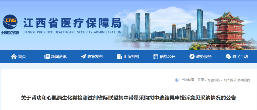 2023年12月22日至2023年12月28日,肾功和心肌酶生化类检测试剂省际联盟集中带量采购工作领导小组办公室对《肾功和心肌酶生化类检测试剂省际联盟集中带量采购拟中选结果》进行公示。公示期间共收到6家企业的5大类申投诉意见。经联席会议办公室2024年第1次会议审议通过,现将此次公示期申投诉意见采纳情况进行公告,具体详见附件。企业1:企业报价7.8元,有需求的医疗机构数量1家,是否通过室间质评(否),全联盟需求量15000,拟中选排名56名;企业2:企业报价7.8元,有需求的医疗机构数量1家,是否通过室间质评(否),全联盟需求量4800,拟中选排名55名。按照排名规则,企业1应该排名55名,企业2排名56名。采纳:经复核投标材料和报量数据,两家企业的报价、信用评级、有需求量的医疗机构数量、室间质评等4种情况相同,医疗机构采购需求量不同。根据集采文件中“企业排名”规则,当出现企业报价相同情况时,医疗机构采购需求量多的企业排名优先。企业1需求量多,排名应为55名,企业2的需求量少,排名应为56名。二、关于室间质评结果:申请将α1-微球蛋白、二氧化碳、肌钙蛋白I的室间质评结果由未通过调整为通过。不采纳:经核实,截至信息公开大会当日,申诉企业在招采子系统填报的相关品种的室间质评结果为“未通过”,与现在申诉递交材料不一致,且材料是在信息公开大会之后递交。三、关于拟中选资格:视黄醇结合蛋白和同型半胱氨酸报价和B组最高拟中选价一样,为什么没有入选。不采纳:经复核,相关企业投标材料和报量数据,结果无误。相同报价下,按照上述规则进行排名,该企业和其他企业报价相同情况下竞争相关拟中选名额时,根据相关规则计算,其“有需求的医疗机构数量”及“室间质评情况”落后,故排名靠后,未获得最终的拟中选资格。关于拟中选资格:7个投标品种有6个品种未中选,影响企业经营,申请重新审核其他6个品种投标情况。不采纳:经复核相关企业投标材料,未获得拟中选资格的6个品种在B竞价组,且报价排名未进入竞价组前60%,故未获得拟中选资格,结果无误。四、关于集采规则:建议取消AB分组,让所有符合要求的企业具有平等竞争的权利;取消淘汰制,让等于或低于限价60%的企业有继续生产的权利。1.集采规则的制定经过充分研究,听取各方意见建议并按照相关程序审议通过后,发布《肾功和心肌酶生化类检测试剂省际联盟集中带量采购文件(JX-HC2023-01)》。2.为尊重临床选择,兼顾保障临床供应和竞争充分,肾功和心肌酶生化类检测试剂集采继续沿用肝功生化类检测试剂集采做法,设立AB竞价组、按企业排名由高到低排序,取有效申报企业数量的60%(四舍五入取整)为拟中选企业数量及0.6倍复活机制。3.采购文件已明确:“采购周期内,医疗机构在优先使用本次集中带量采购中选产品的基础上,协议采购量以外的部分可按当地医用耗材集中采购管理有关规定,适量采购其他价格适宜的非中选产品。”五、关于拟中选价格:肌红蛋白mL组,其报价范围通常为7元以上,B组最低中选价前位的1.4元/mL~6.0529 元/mL(共7家企业)可能存在低于成本的恶意报价嫌疑;胱抑素mL组,其报价范围通常为4元以上,B组最低中选价前位的1.1元/mL~3.7511 元/mL(共9家企业)可能存在低于成本的恶意报价嫌疑。不采纳:与投诉企业沟通,请其根据《关于肾功和心肌酶生化类检测试剂省际联盟集中带量采购拟中选结果的公示》要求,提供合法有效的佐证依据。企业未能提供相关依据。从申诉的结果来看,第一条因两家企业的报价、信用评级、有需求量的医疗机构数量、室间质评等4种情况相同,医疗机构采购需求量不同。根据集采文件中“企业排名”规则,当出现企业报价相同情况时,医疗机构采购需求量多的企业排名优先。此条建议被采纳。初次之外的申诉五花八门,申请将室间质评由未通过调整为通过的、因未中选影响经营的、建议取消AB分组的。