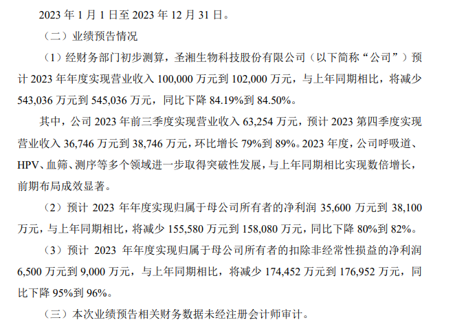 4.圣湘生物预计去年营收净利齐跌八成:新冠相关业务收入下降,澎湃新闻,2024
