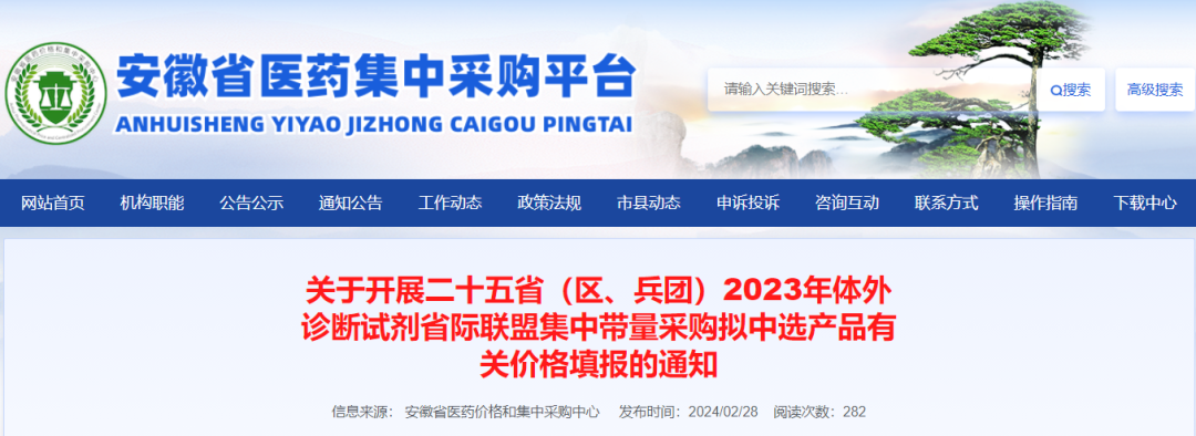 2月28日,安徽医保局发布通知,关于开展二十五省(区、兵团)2023年体外诊断试剂省际联盟集中带量采购拟中选产品有关价格填报的通知,要求3月5日前完成。 各相关企业: 根据《2023年体外诊断试剂省际联盟集中带量采购文件(采购文件编号:IVDLM—2023—01)》相关带量采购价要求,决定对拟中选产品的全国省级挂网最低价等价格开展填报,现将有关事项通知如下: 一、填报时间 2024年2月28日—3月5日。 二、填报路径 请登录安徽省医药集中采购平台→“检验试剂数据库申报系统”→“检验试剂招采”→“联盟集采价格填报”模块选择相应产品进行填报,无需现场递交纸质材料。 三、注意事项 (一)请按要求填报全国省级带量采购最低价、全国省级挂网最低价、联盟省份医疗机构实际采购最低价,并上传证明材料(省级挂网平台截图、中标通知书等,加盖企业鲜章)。价格统计时间为2022年1月1日至今。 (二)本次填报价格,要求按照包装规格进行填报,例如:200人份/盒,所有填报的价格应为200人份的价格,非单人份价格。 (三)企业对所提供的价格信息及证明材料合法性、真实性负责。省际联盟采购办公室将对填报价格予以公示。若发现有未如实提供产品相关信息的,经核实后,按医药价格和招采信用制度规定予以评级。 (四)各企业要高度重视,在规定时间内完成填报,未在规定时间内完成填报视为放弃,取消拟中选资格,相关责任由企业承担。 联系电话:0551-69029729,62690373 体外诊断试剂省际联盟来购办公室(代) 2024年2月28日 |