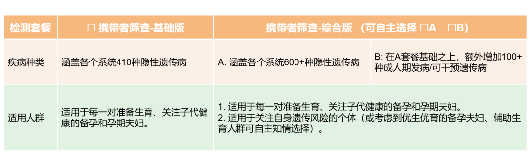 韦翰斯生物自成立以来一直致力于单基因遗传病在出生缺陷防控、遗传病筛查及诊断的各阶段的应用,韦翰斯生物依据临床的需求定制了不同的单基因遗传病携带者筛查产品,针对这三篇专家共识韦翰斯生物特推出两款携带者筛查产品,具体如下:基础版:涵盖各个系统410种隐性遗传病的panel。综合版:涵盖各系统600+种隐性遗传病,并可根据受检者自主选择知情/报告成年发病的遗传病或临床可干预的显性遗传病。