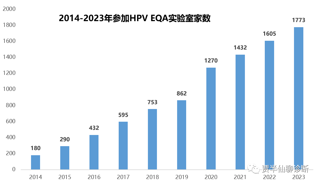 从EQA数据可以看出从2014-2023年参加实验室的数量从180家大幅增加到1773家,10年复合增长率达到惊人的25%。