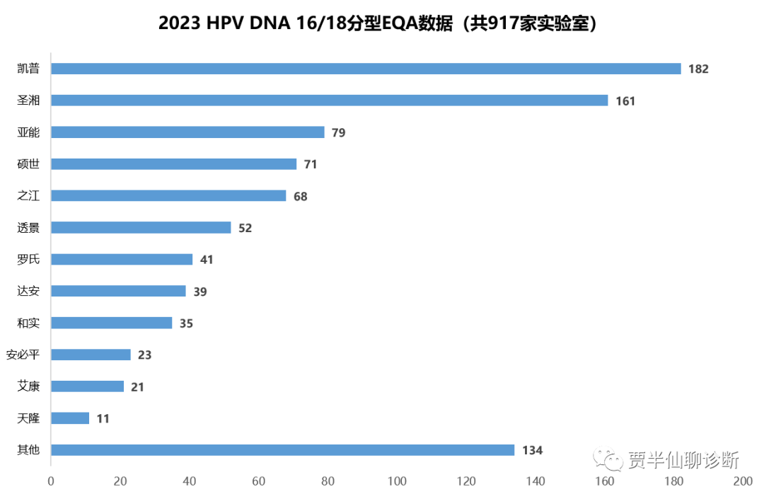 必须说明的是EQA数据仅仅是一个方面,仅检测DNA,如豪洛捷公司就没参与;再有价格因素没考虑,每家实验室使用数量也未考量;但依然可以管中窥豹的。