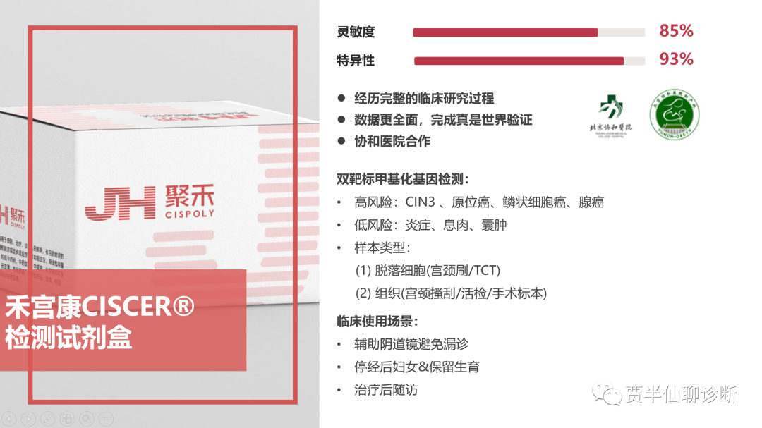 从灵敏度和特异性而言,甲基化标志物在检测CIN2+以上的癌前病变的灵敏度和特异度都在0.85水平或以上,而TCT的灵敏度和特异性分别在0.65和0.75水平,传统的 HPV灵敏度虽高(0.85水平),但特异性不足(0.45水平)。