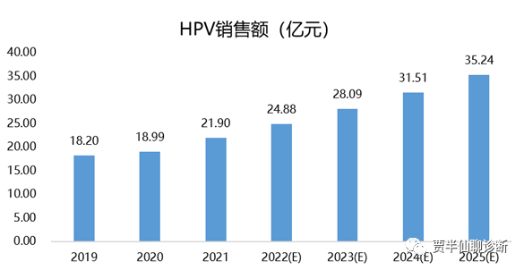 根据2022 IPSOS Market tracker数据HPV销售数据以出厂价计约为30亿元。