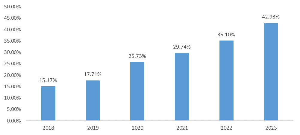 在肿标的领域,我们看到国内仪器的报名数量已经快达到一半的市场,在相对成熟的肿标领域,国内企业的产品不管是仪器还是试剂的质量,正在逐渐的被市场认可,从近两年来看,这个现象更加的明显。相信这些数字可能会在2024年又发生一些变化,始终也要相信,国内会出现更多优秀的企业。