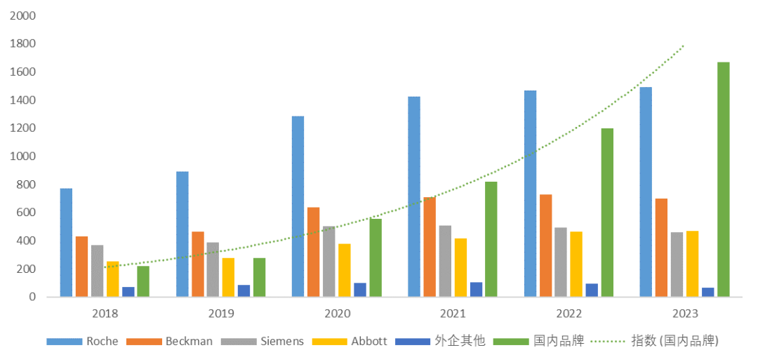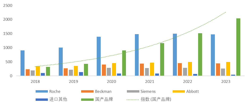 图表1:四大家及国产品牌的仪器数量变化