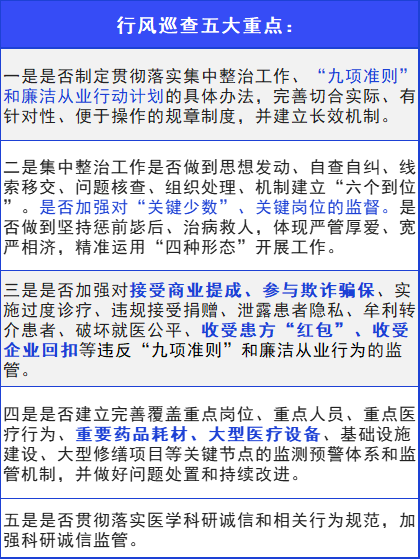 3月5日,上海市卫健委网站印发了《2024年医政医管工作的要点》。其中指出2024年将: 加强医院评审、巡查工作。开展新一轮大型医院巡查,重点关注费用、报销、样本外送、院外购药、高值耗材使用等环节。 早在去年年底(23年12月18日),国家卫健委官网发布《大型医院巡查工作方案(2023-2026年度)》。这份国家文件就作出明确要求:自2023年12月-2026年10月底,对全国二级及以上公立医院展开巡查。 此次一纸通知的下发,无疑意味着大型公立医院巡查开始在上海市落地了。 而在近期打响巡查行动发令枪的,远不止上海。 3月6日,河南省卫生健康委重磅发布《2024年全省卫生健康系统真抓实干重点任务清单》,列出全年40项重点任务,其中一项便是开展大型医院巡查。 2月16日,鄂尔多斯市卫健委召开全市卫生健康工作会议暨党风廉政建设工作会议,会议强调,2024年,纵深推进医药领域腐败问题集中整治,实施新一轮大型医院巡查。 1月23日,河北省卫健委发布消息称,启动大型医院巡查工作。《河北省大型医院巡查工作实施方案(2023-2026)年度》指出,要利用3年时间,对河北全省二级及以上综合、专科公立医院开展巡查。 同样是1月23日当天,四川省卫健委也发布了《四川省大型医院巡查工作实施方案(2024-2026年度)》。宣布巡查自2024年1月启动,巡查对象为二级及以上公立医院,于2026年10月底前完成。 四川省卫健委公布的巡查医疗机构名单显示,此次被纳入巡查范围的有13家大型医院: 显然,按照国家预定的进度,目前各省市正处于大型医院巡查工作的密集部署阶段,2024年,各地大型医院都将开始步入医院巡查的高峰期。 纵观地方到国家的医院巡查文件,均在巡查方式、巡查时间等方面作出严格规定。 巡查方式:包括听取汇报、列席会议、查阅资料、调查访谈、实地查看、民主测评、个案追踪、系统追踪等。 巡查时间:对三级综合医院巡查时间原则上不少于7天,三级专科医院、妇幼保健院和二级医院原则上不少于5天。 巡查要求:实行回避制度,不得与被巡查医院存在任何利害关系;巡查工作严禁弄虚作假、搞形式主义、走过场。 可以说种种规则和细节均揭示出,此轮医院巡查的手段与威力,非同一般。那么,被纳入巡查重点范畴的究竟包括医院哪些行为呢? 以上海为例,此次上海的通知中便两次提及要重点关注医药费用、院外购药、高值耗材使用等环节,显然是监管焦点无疑。 四川省大型医院的巡查内容则与国家卫健委巡查文件的要求基本一致,主要聚焦公立医院党建、行业作风建设、运行管理,分为三部分、15大类、69条。 其中包括接受商业提成、收受红包回扣等行为,通通被纳入严查范围;“关键少数”、重点岗位、重点人员,重要药品耗材、大型医疗设备、重点医疗行为等也纷纷被点名,成为监管重点。 对比此前,新一轮大型医院巡查覆盖内容更多、巡查机制更落地、巡查重点更细化。 随着其正式落地执行的发令枪在24年年初密集打响,接下来医疗行业的乱象整治即将步入一个新高潮,届时影响的不仅仅是医院,还有大批药械购销流通环节的企业及个人。 |