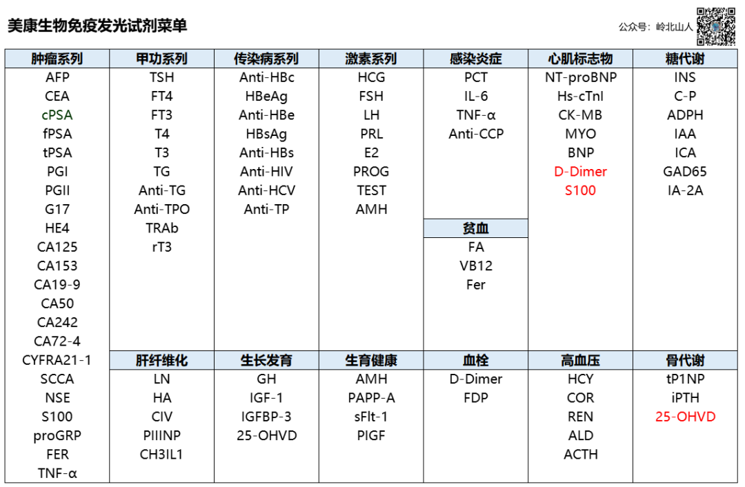 对于试剂菜单来讲,美康生物科技后来者居上,截至目前,已经取得85个项目的注册证。涵盖肿瘤标志物、甲功、传染病、性激素等14个panel。