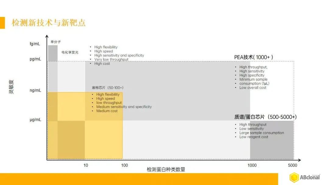 Olink的PEA技术结合了抗体夹心与NGS测序,某种程度上克服了质谱的低丰度蛋白不稳定性问题,且还能实现超过5000种不同蛋白质的检测。