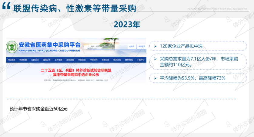 2023年,安徽牵头传染病、激素、HCG、糖代谢等联盟带量,平均降幅53.9%.