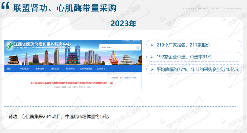 2023年,江西牵头肾功、心肌酶联盟带量,平均降幅77%.