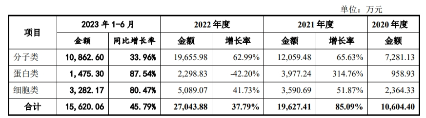 公司生物试剂产品可以分为分子类、蛋白类和细胞类三大类,主要服务科研和工业两大类客户。科研客户采购生物试剂主要用于科学研究。就工业客户而言,分子类生物试剂主要作为诊断与检测试剂研发和生产的核心原料,蛋白类生物试剂主要用于抗体药物研发和生产、基因治疗药物研发和生产、疫苗研发和生产等。细胞类生物试剂主要用于细胞培养、细胞功能检测和细胞状态检测等。 翌圣生物在招股书中披露,Frost & Sullivan统计数据显示,2021年公司在科研类客户中市场占有率为1.21%;在工业类客户市场,2021年公司在中国分子诊断原料酶市场的占有率为2.69%,在中国高通量测序文库构建原料酶市场的占有率为4.50%,在中国mRNA疫苗制备核心酶原料市场的占有率为0.9%。 据医药魔方投融资数据库,翌圣生物在2020年至2021年完成A轮、B轮、B+轮融资,总融资金额超6亿元,投资方包括安徽探针、泰礼创业、君联资本、惠每资本、弘蓝控股、CPE源峰等。 原计划上市,翌圣生物公司选择《上海证券交易所科创板股票发行上市审核规则》第二十二条第一项标准,即“(一)预计市值不低于人民币10亿元,最近两年净利润均为正且累计净利润不低于人民币5,000万元,或者预计市值不低于人民币10亿元,最近一年净利润为正且营业收入不低于人民币1亿元”,作为上市标准。 原计划募集金额拟用于以下用途: 财务方面,2019年、2020年、2021年和2022年1-6月,翌圣生物分别实现营业收入9,786.25万元、1.86亿元、3.22亿元和2.00亿元,归属于母公司股东的净利润分别为180.58万元、5,296.89万元、1.01亿元和3,214.55万元。 翌圣生物主要财务数据和财务指标 其中,2020年、2021年和2022年1-6月,公司与新冠相关的产品销售收入分别为4,614.76万元、8,174.13万元和7,689.73万元,占当期营业收入的比例分别为24.77%、25.42%和38.28%。 科创板上市委也关注到这一点,并在第二轮问询函中问及“新冠疫情对分子诊断原料酶、高通量基因测序和疫苗制备业务的影响,相关业务未来发展趋势,是否存在收入大幅下滑的风险”。 翌圣生物对此的回复是:报告期各期,剔除新冠相关产品和代理产品,2020年至2022年公司自有品牌生物试剂销售收入呈现持续增长态势,复合增长率为59.70%,预计未来不存在收入大幅下滑的风险。 翌圣生物自有品牌生物试剂销售收入及其增长率情况 图片来源:翌圣生物第二轮审核问询函的回复 相应的客户增长方面,翌圣生物回复第二轮审核问询函时表示,2020年至2023年1-6月,公司自有品牌生物试剂非新冠相关收入科研类客户和工业类客户平均增长率分别为46.37%和 70.75%,增长速度较快。另据其招股书(上会稿),2019年至2022年,公司完成科研类客户为主(2019年科研客户销售额占总收入的77.20%)向工业类客户为主(2022年工业客户销售额占总收入75.3%)的转变。 翌圣生物股权结构 |