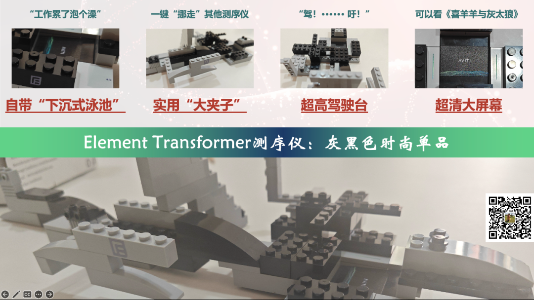 既“炫酷”又“实用”是怎么肥事?😂 “方方正正的一个大盒子+大屏幕”——不知道什么时候起,NGS测序仪的样子就被固化了。 如果一台测序仪不仅可以泡澡,还能一键挪走别的测序仪,更重要的是能边测序边看喜羊羊,大家觉得可还好? 这事儿要从一次“意外”开始…… 众所周知,作为一个接不到不接广告的公众号,什么甲方爸爸的周边、礼物之类的,不存在的。 所以,当女神节收到这么一个盒子的时候,我有点懵。——拆开来一看,更懵了:里面是这么一堆东西: 从零件上面的“AVITI”字样来看,应该是Element寄来的,于是我联系了JoJo: “它里面是散的零件,要靠自己拼的吗?” “当然要自己拼咯 ”JoJo还很贴心的给我发来了安装指引,两个文件300多MB——呵,幸好第二个文件一直没有接收成功,不然就不得不看了 既然没有安装指引,我就把这一堆零件随手放在了旁边,然后被还在上幼儿园的MM小盆友拿走了。 等过了一段时间我再想起来它的时候,MM小盆友说她已经拼好了,喏,长这样: 我的感觉只有两个字:炫酷! 她还给产品做了详细的功能介绍: 大家觉得哪个功能最有卖点?(MM小盆友选的是“喜羊羊”)。 苍白,实在是太苍白了!如果想正经了解Element AVITI,还是看看海王和建设兄吧😂: 最后,那些零件“正常”拼出来长啥样? u1s1,还原度还是挺高的,细节也很到位。 但是,真的有人会正儿八经的拼成这样吗?大夹子什么的不香吗? Element的伙伴们应该也是这么想的吧: |
