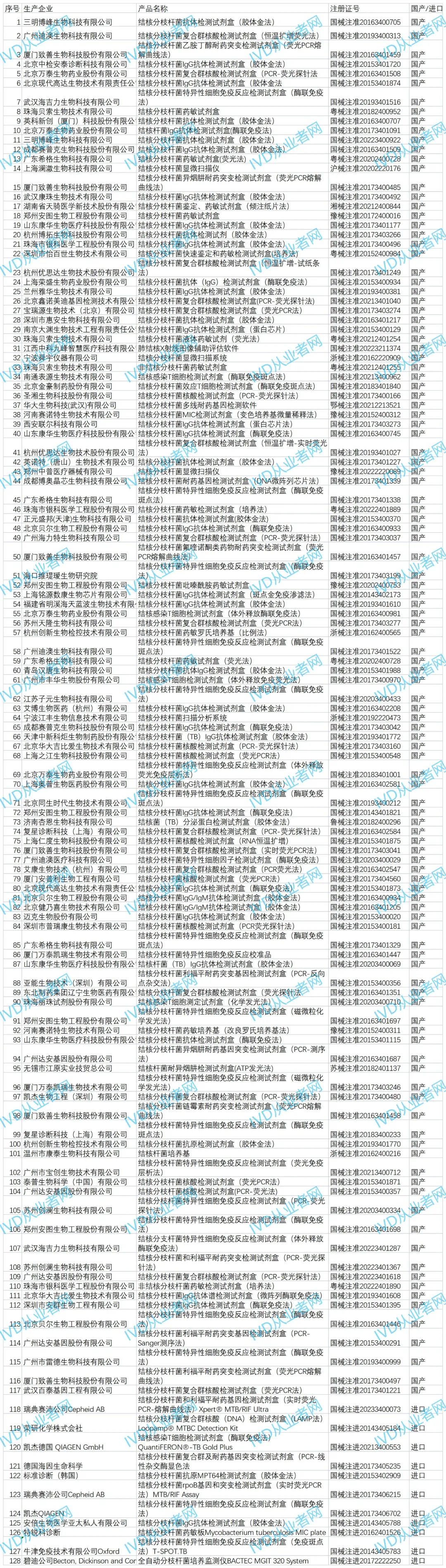 以上数据进人工统计,如有错误及纰漏,请联系修改 参考资料:结核东方论坛、国家药监局 |