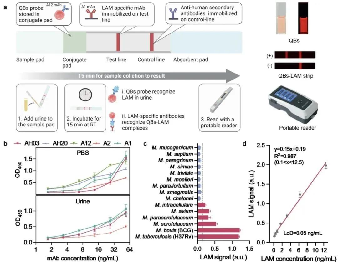 推荐产品系列2:Truenat MTB,MTB Plus和TB-RIF Dx检测法 MolBio Diagnostics:Truenat MTB\MTB Plus and Truenat MTB-RIF Dx(印度)推荐用途:对于有肺结核症状和体征的成人和儿童作为肺结核的初始诊断检测 推荐用途:对于有肺结核症状和体征的患者,可在呼吸道样本中使用NAATs检测肺结核以及利福平和异烟肼耐药性 推荐产品系列4:环介导等温扩增(Loop-mediated isothermal amplification,LAMP)技术(日本)推荐用途:对于有肺结核症状和体征的成人,TB-LAMP可替代痰涂片镜检诊断肺结核或作为痰涂片镜检的后续检测,尤其是在需要进一步检测痰涂片阴性标本时。 推荐产品系列5:侧流尿脂阿拉伯甘露聚糖测定法(Lateral flow urine lipoarabinomannan assay,LF-LAM)- Alere Determine™ TB LAM Ag (Alere)(美国)