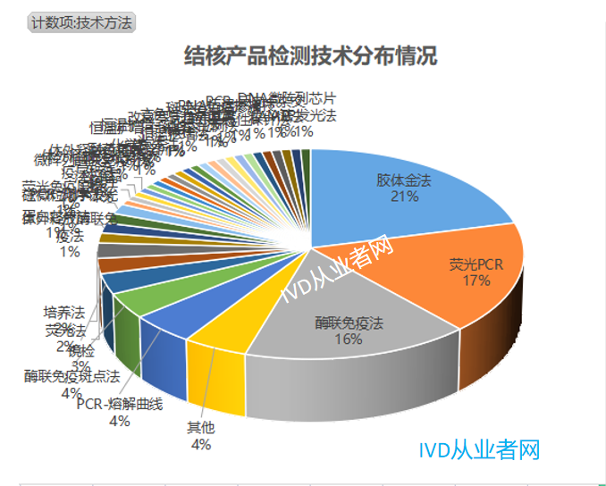 按照检测技术来看: 排在第一位的是胶体金技术,该技术主要用于结核抗体的检测。 排在第二位的是荧光PCR技术,该技术主要用于结核DNA的检测排在第三位的是酶联免疫技术,该技术主要用于IGRA检测而PCR-熔解曲线则主要用于结核二线耐药基因的检测