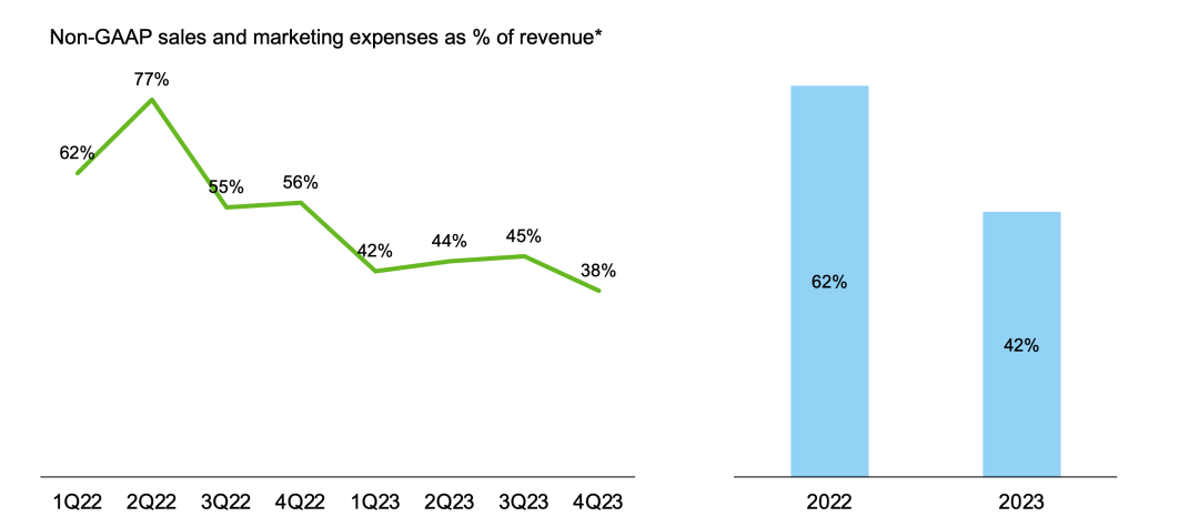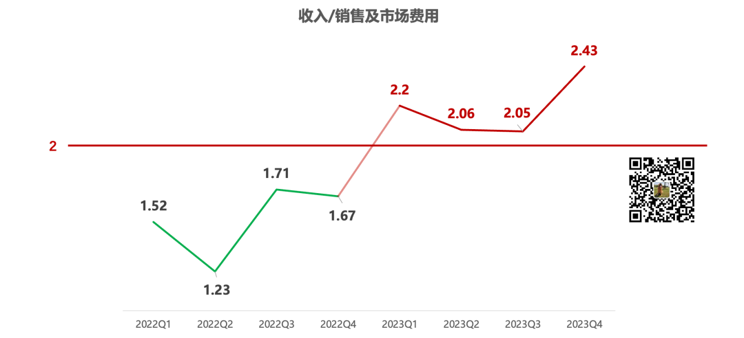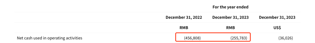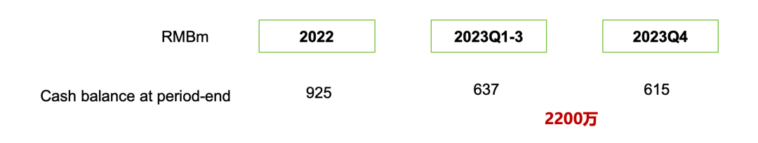 “少花钱”这个点在2023年Q4更是展现到了极致——单季度现金流出“仅”有2200万。