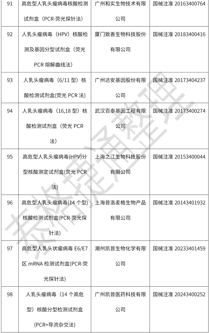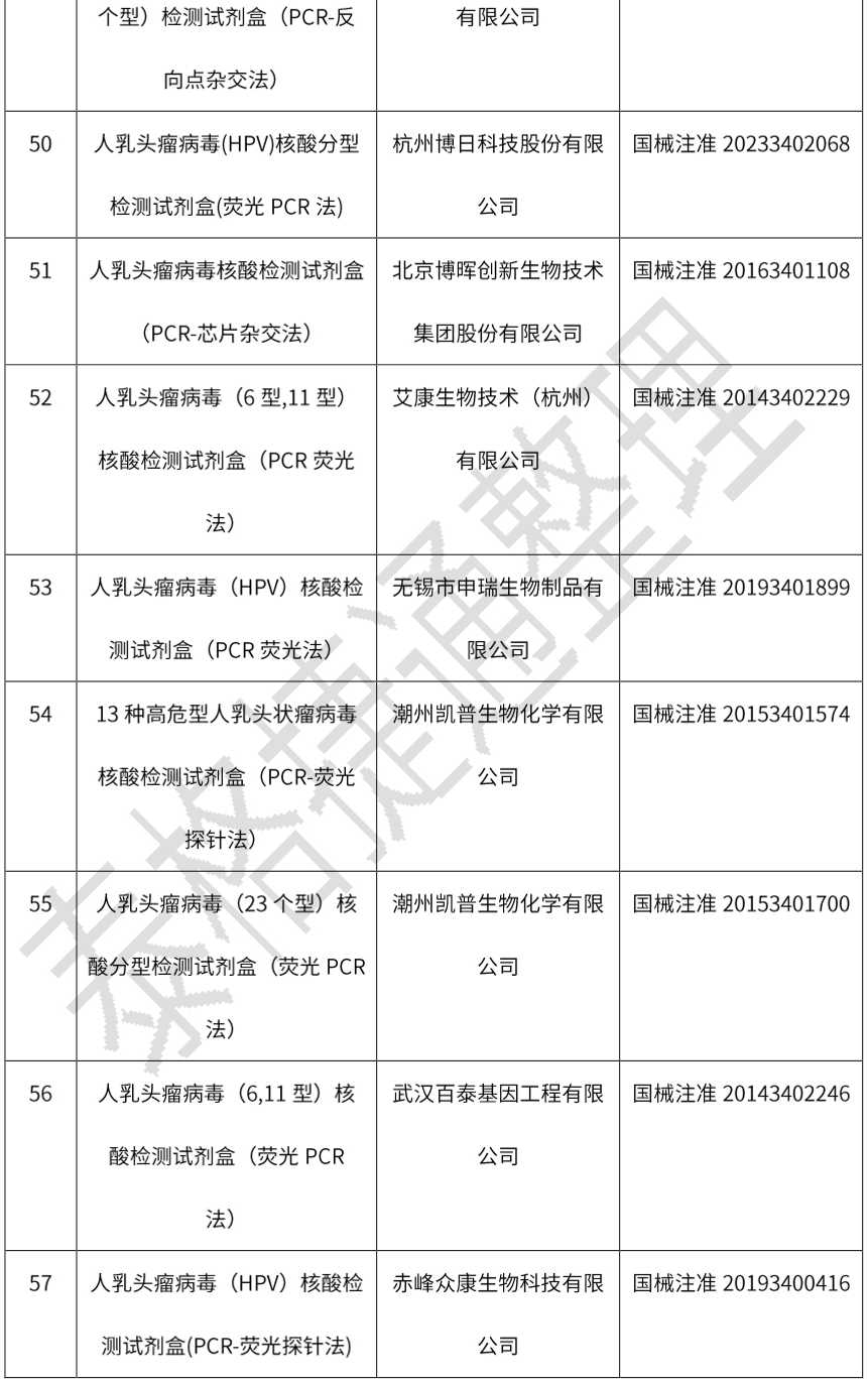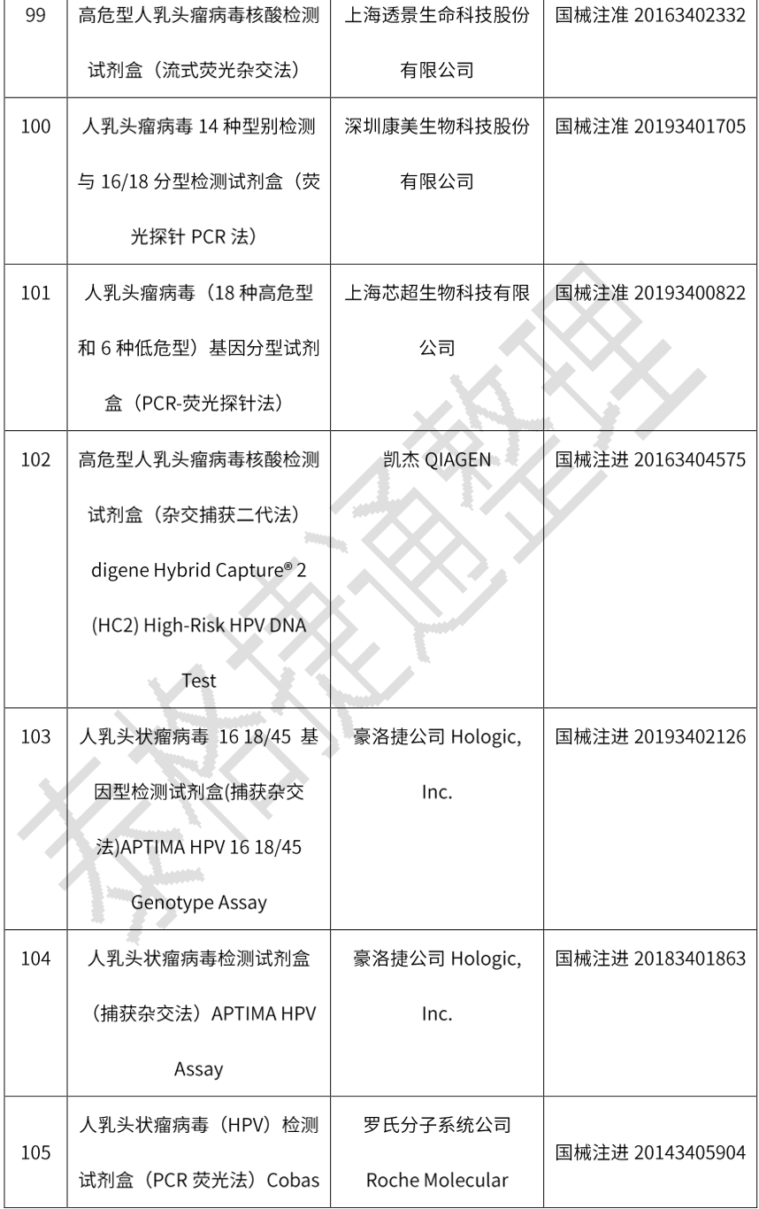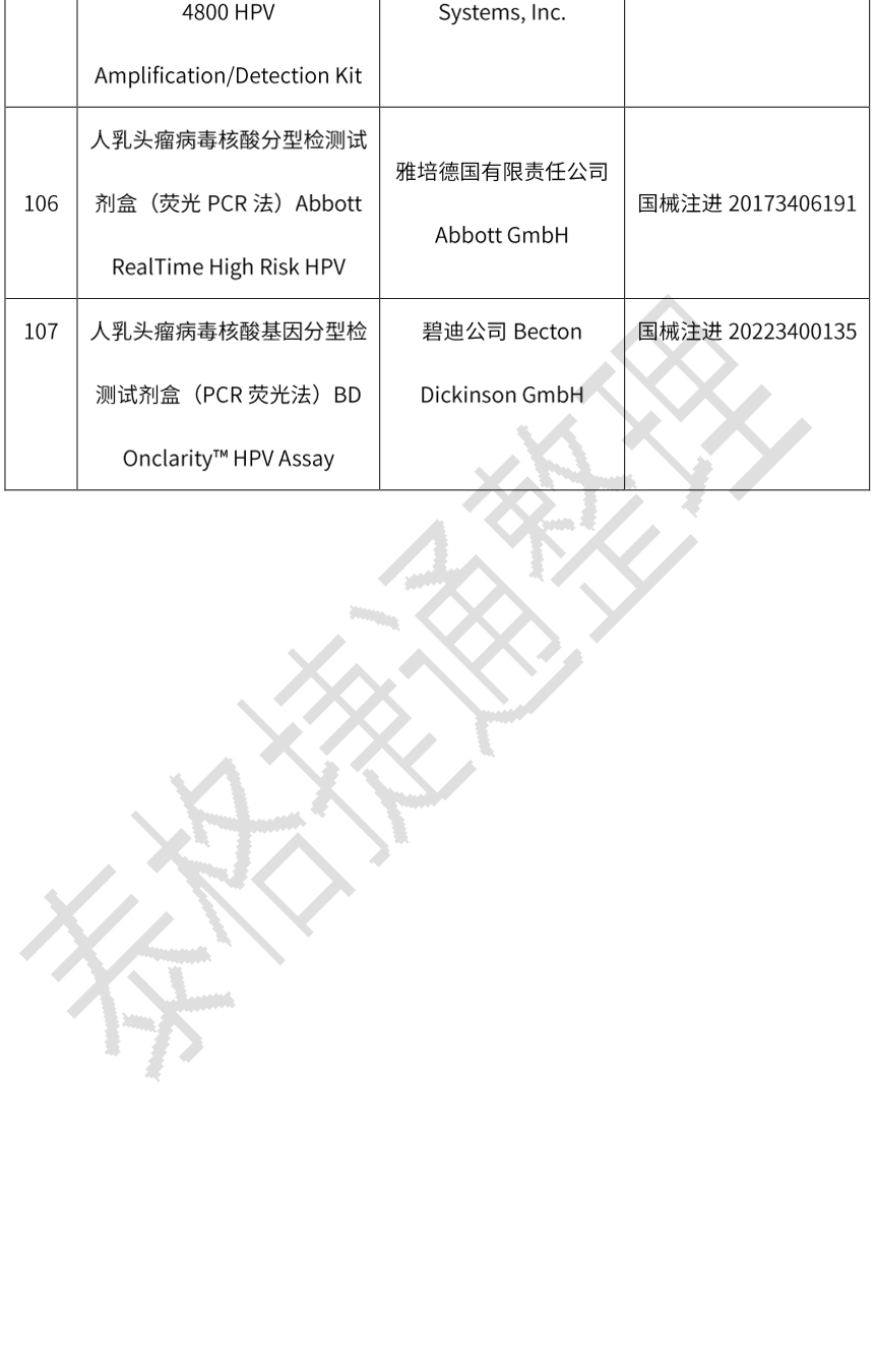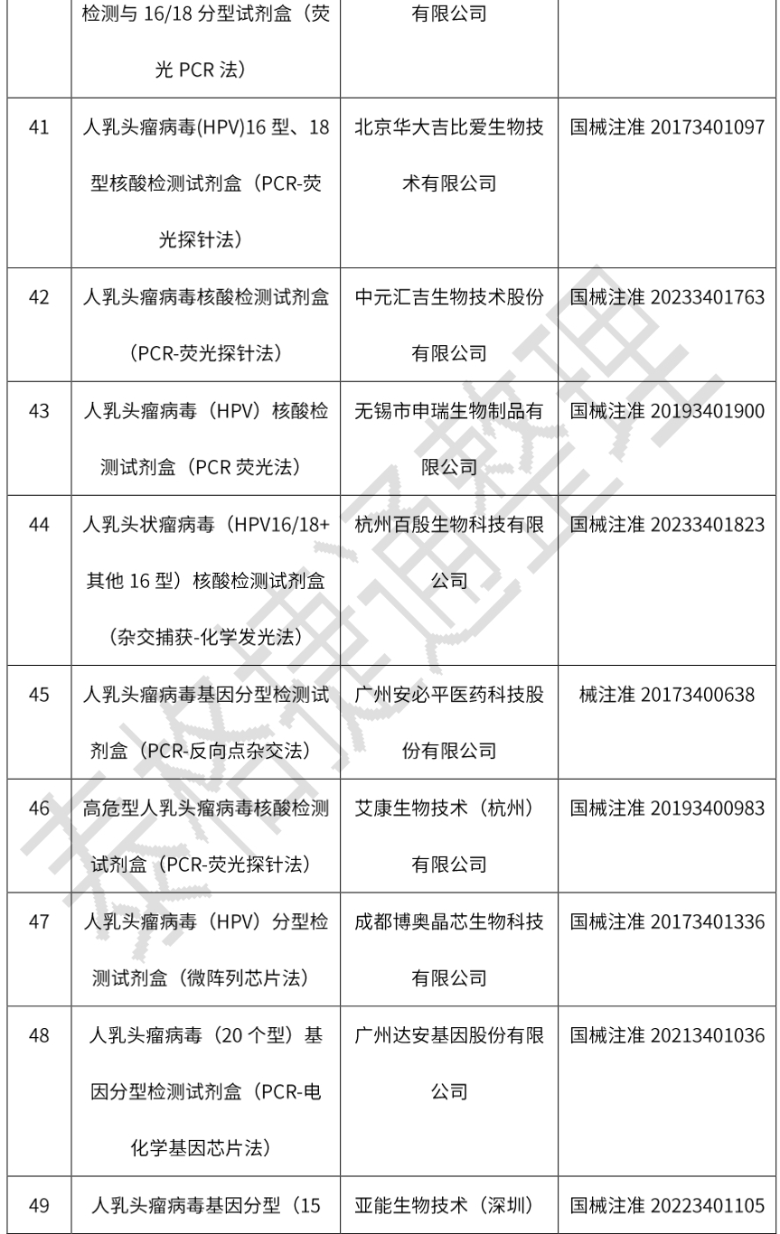截止至2024年3月,已获证的HPV核酸检测试剂盒107款,境内101款,境外6款,产品详细信息见表1。