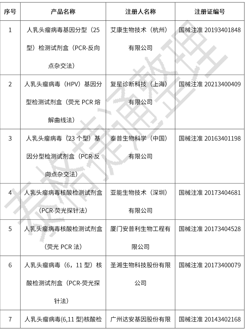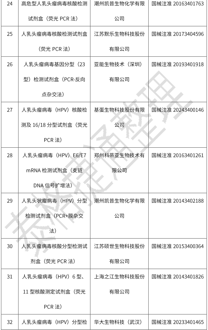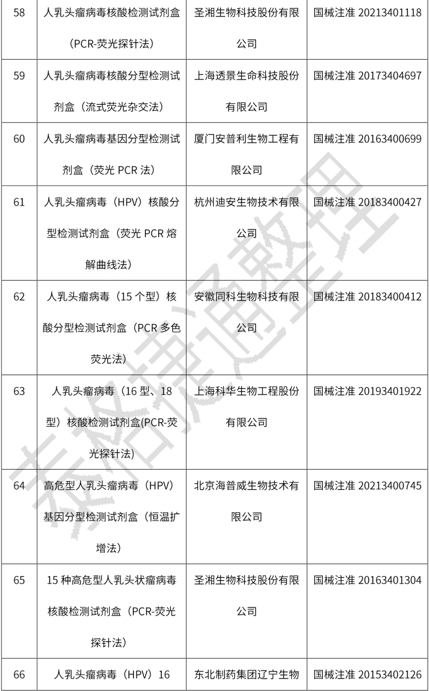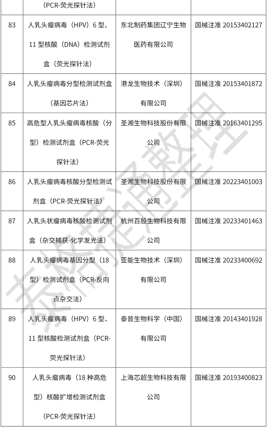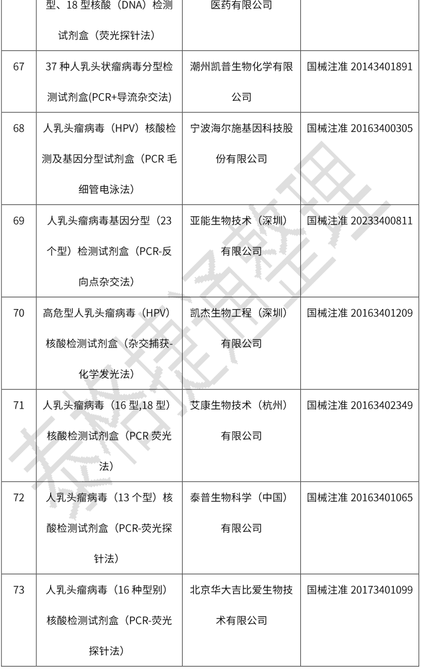 截止至2024年3月,已获证的HPV核酸检测试剂盒107款,境内101款,境外6款,产品详细信息见表1。
