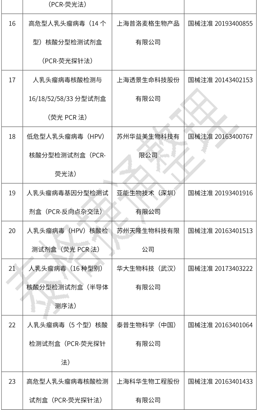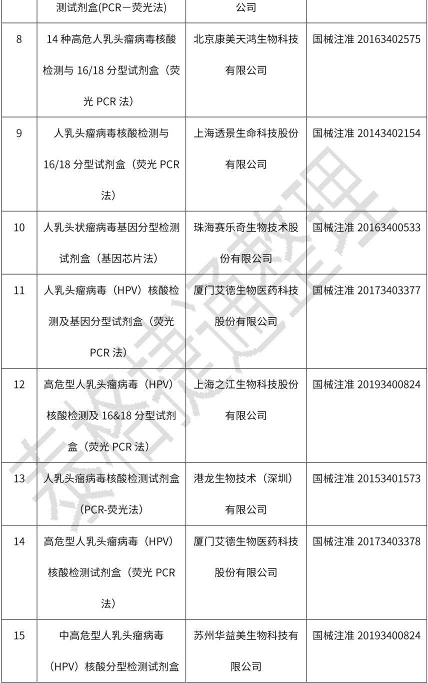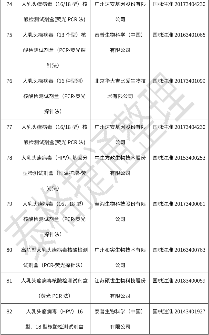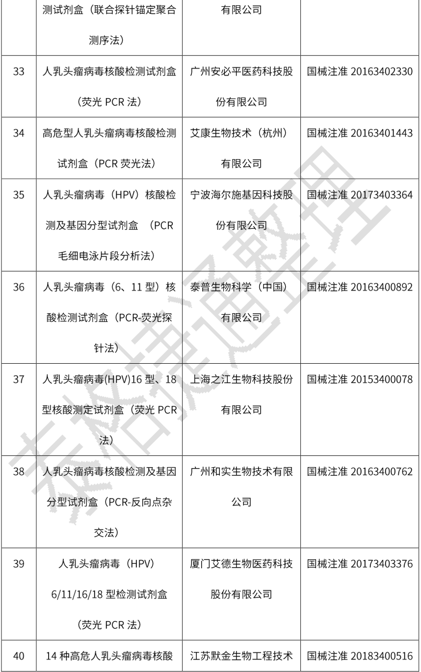 表1 已获证的HPV核酸检测试剂盒情况汇总