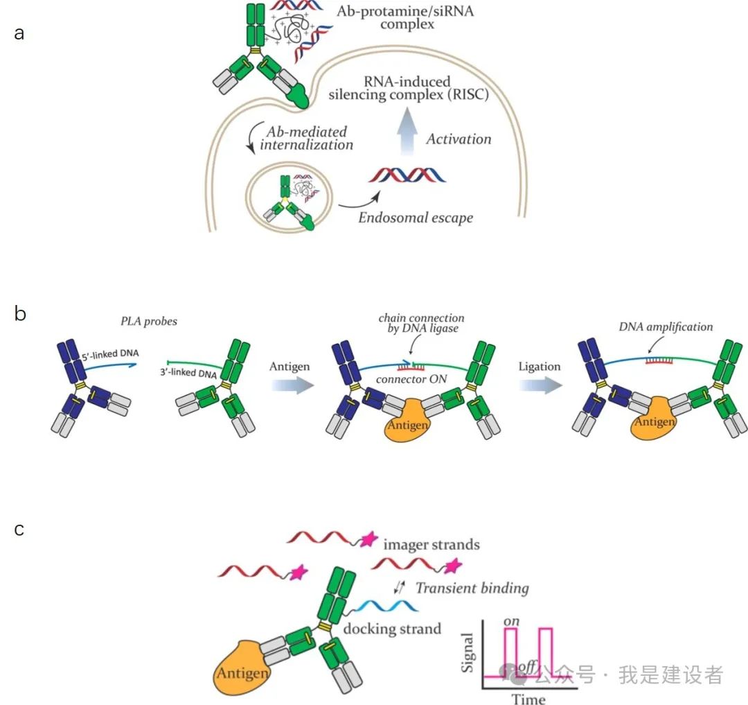 如果你关注免疫诊断、蛋白组学技术的发展(不管是单细胞还是群体或是空间),你就会发现抗体偶联寡核苷酸(Antibody-Oligonucleotide Conjugates, AOC)越来越多地被用到。如果你关注新型治疗形式,那么在抗体偶联药物ADC之后很热的一个方向就是抗体偶联寡核苷酸AOC的成药形式。 AOC用于各种单细胞Assay Immuno PCR Assay Proximity Ligation Assay Ab-oligo偶联物或者称AOC已经被用于从诊断到治疗的很多方面。 AOC最初是为了满足精确有效检测低丰度蛋白质的未满足需求而开发的,在免疫PCR、邻近连接分析PLA、多重免疫测定如Olink基于PEA开发的产品、单细胞多组学特如CITE-seq等检测,以及DNA-PAINT分子成像等领域广泛应用。这些本质上都依赖于抗体的靶标识别特性和核酸的扩增特性。 参考:Olink: 基于亲和力+NGS测序的蛋白组学 // Alamar: 紧随Olink的步伐,这家华人创办的蛋白组学公司 a, AOC小核酸药物;b, PLA;c, DNA Paint 除了生物分析外,AOC还因其通过表面受体介导的内吞作用将包括siRNA、ASO和CpG等在内的遗传治疗有效载荷递送到靶细胞中的潜力而受到极大关注。国内外有多家公司在开发AOC的治疗药物。 理论上,抗体+Linker+寡核苷酸即AOC,其分子量相对较大,在中性和碱性环境下带负电荷、极性大、水溶性强。 抗体因为具有多个官能团,因此可以使用多种缀合化学物质,轻松地与寡核苷酸偶联。 比如,抗体有多个氨基NH2,其作为赖氨酸 (K/Lys)侧链ε-胺和 N 末端 α-氨基分布在各处,其次被常用语进行偶联。除了胺基之外,谷氨酸和天冬氨酸残基以及羧酸 (-COOH) 残基也可以通过其C末端进行偶联。然而,抗体表面分布着大量胺基和羧基官能团,这意味着所用的偶联方法可能会由于结合位点附近缀合残基的空间位阻而导至AOC对靶标失活或亲和力降低。 抗体含有以二硫键 (S-S) 桥形式存在的氧化硫氢基(-SH),这有助于形成抗体的三级结构。Ab-oligo也可以通过巯基进行缀合反应,但这些二硫桥必须先通过还原剂(例如2-ME / SDS)还原以暴露其反应基团。 半胱氨酸和谷氨酰胺因此成为位点特异性偶联的两种常用氨基酸位点。而另一种实现位点特异性偶联的方法是将含有反应性基团的非天然氨基酸(如叠氮基、乙酰基)引入抗体中。与天然氨基酸偶联相比,非天然氨基酸偶联更稳定、更有效,然而,抗体工程也相对繁琐。 逐渐开发的另一种定点偶联的方法发生在抗体的多聚糖链上,这些碳水化合物残基主要出现在 Fc 区,距离抗原结合位点较远,不易受到空间位阻的影响。聚糖偶联,确定连接的有效载荷寡核苷酸的数量和位置也相对简单。 以上这些都是无连接子偶联,由于直接利用了抗体自身的官能团,可能会影响到天然抗体的性能。所以连接子介导的偶联方法被开发,引入连接分子来交联靶抗体和有效的oligo载荷。 可用的交联化学物质包括硫醇马来酰亚胺、NHS-酯、戊二醛、或者是通过点击化学来实现。 与无连接子的偶联相比,连接子介导的偶联可以更好地控制有效载荷的数量和位点特异性,而无需对抗体进行设计。 以前,用于将寡核苷酸与抗体连接的标准化学和方法既困难又耗时,并且需要化学修饰技术的专业科学知识。如今,已经开发出简单、高效和高产的技术,可以快速、轻松地制备AOC。市面上甚至出现了相应的试剂盒用于用户自主生成AOC。 由于最终的应用场景和实验目的不同,对于AOC偶联反应的终产物要求也不尽相同。但总体上来讲,不同的场景都希望AOC终产物有更精准更一致的OAR值(寡核苷酸与抗体比率,oligonucleotide-to-antibody ratio)或称DoC(偶联程度Degree of Conjugation),因此在进行偶联反应后,需要经过纯化去除未偶联物、多聚体、降解片段等多种副产物。高分辨率离子交换是较为常见的层析方式用于偶联反应后AOC的纯化。 往前看,AOC偶联反应及生产的效率、成本、可及性,以及更精准的定点偶联方式、更一致等OAR值等方面的需求会更加突出。此外,抗体提供及寡核苷酸合成服务都越来越可及,随着科研、检测分析及治疗开发等不同场景的需求越来越明确,AOC制备的灵活性、可扩展性、便利性等要求也至关重要。 作为一种新型生产资料,AOC的发展现在可能依然在婴幼期。 你觉得这里有什么机会吗?欢迎留言。 |