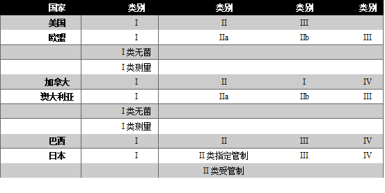 在全球化的医疗领域,了解各国医疗器械的分类至关重要。本文深入探讨了美国、欧盟、加拿大、澳大利亚、巴西和日本等国家的医疗器械分类系统,揭示了不同类别器械的风险等级和监管要求,为确保患者安全和产品有效性提供了关键指南。 在谈论谁需要遵守设计控制要求以及这些要求是什么之前,我们先来谈谈医疗器械的分类。在欧洲、加拿大、澳大利亚、巴西和日本,目前有四个医疗器械类别。此外,欧洲和澳大利亚的分类系统还包括一级无菌和一级测量函数类别(见表2.1)。医疗器械为确保其安全性和有效性所需的控制量取决于其医疗器械类别。I类器械对使用者造成伤害的风险最低,需要的监管控制也最少,而III类或IV类器械对使用者造成伤害的风险最大,需要的监管控制也最多。医疗器械被划分到哪个级别是根据其安全性和有效性或「风险」而定的。在美国,FDA通过考虑以下因素来确定和分配器械类别:► 使用指征:器械的使用条件是什么,包括器械标签或广告中规定、推荐或建议的使用条件,以及其他预期的使用条件?► 安全性/风险:使用该器械对健康可能带来的益处与使用该器械可能造成的伤害或疾病——风险/益处——的权衡结果如何?在欧洲、加拿大、澳大利亚和巴西,医疗器械也采用基于风险的分类方案进行分类;不过,确定器械类别是制造商的责任。在欧洲,器械分类根据《Medical Device Directive》附件IX或《Medical Devices Regulation》附件VIII确定。同样,在澳大利亚,器械分类根据《Therapeutic Goods (Medical Devices) Regulations 2002》附表2确定。在加拿大,医疗器械分类根据《Canadian Medical Devices Regulation》(SOR-98/282)附表1确定。在巴西,医疗器械分类根据RDC No.185附件II确定。在日本,医疗器械分类由《PMD Act》和《JMDN Code》确定。