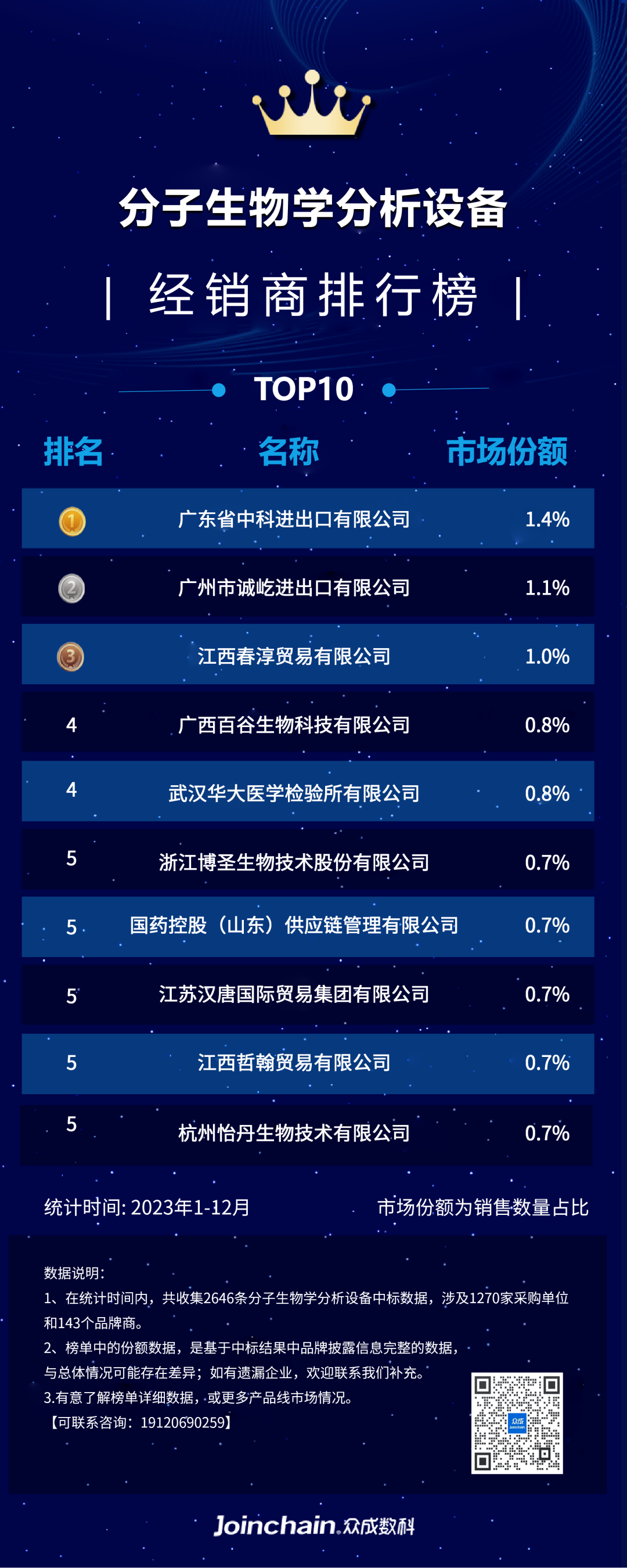 图3:2023年分子生物学分析设备经销商排行榜